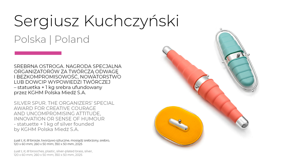 • Antal Zilahi (Węgry) – twórca poetyckiej, lustrzanej broszy, która w subtelny sposób gra z odbiciem i perspektywą – 2. nagroda