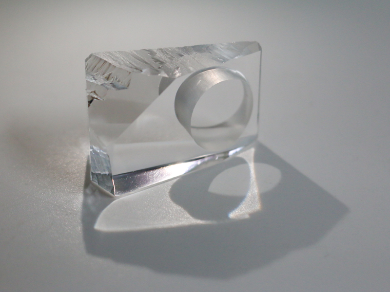 W centrum jego prac znajduje się kryształ górski – kamień pełen przejrzystości i niespodzianek. Światło odbija się w jego wnętrzu, tworząc refleksy i bliki, czasem nawet efekt tęczy. Oprócz kryształu artysta wykorzystuje krzemień pasiasty, krzemień czekoladowy oraz bursztyn, każdemu z nich nadając indywidualny głos w biżuteryjnej kompozycji. Metal – najczęściej srebro – pełni tu funkcję służebną: uzupełnia i podkreśla to, co najważniejsze.