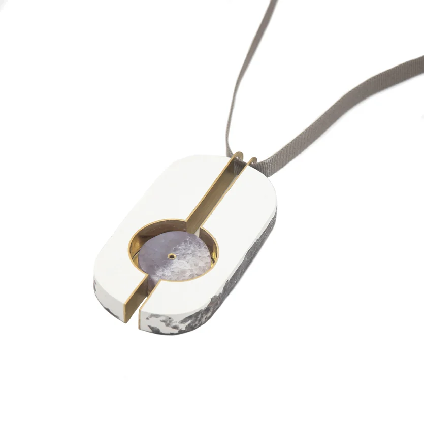 Materiał: agat, biały polimer, srebro.