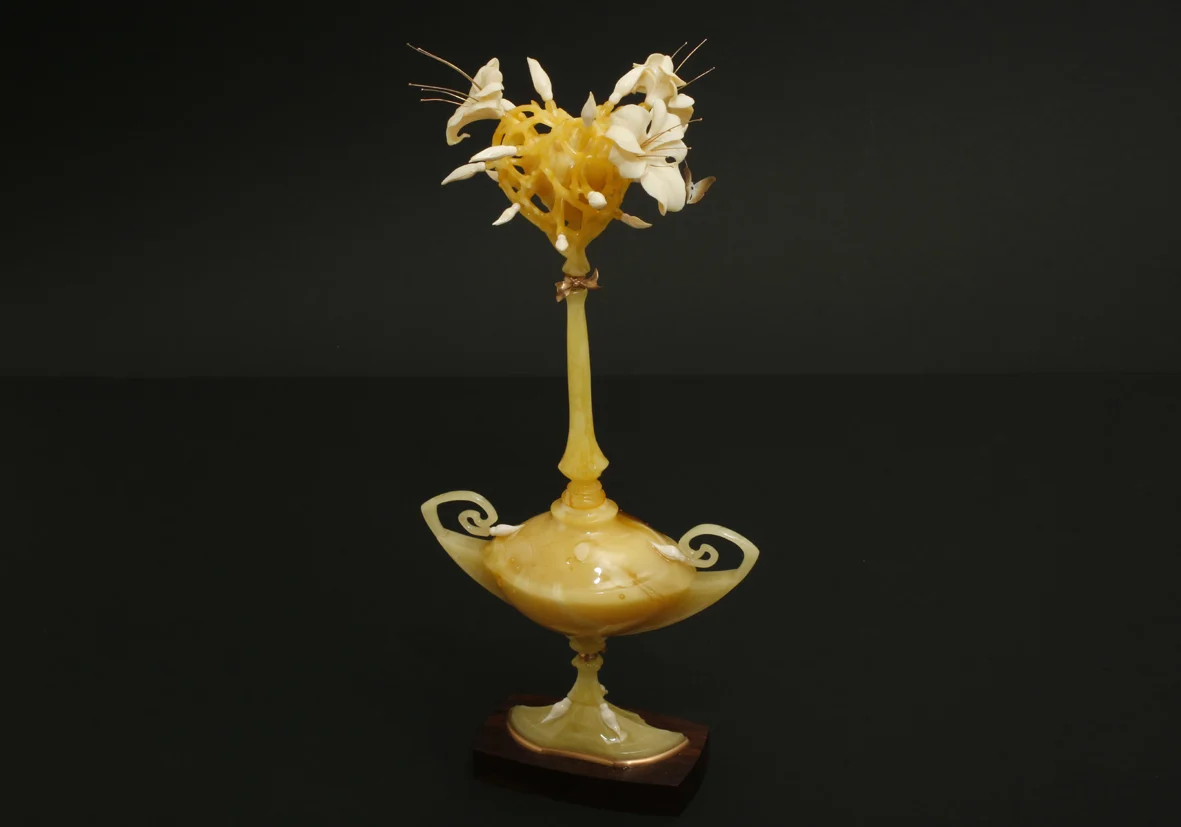Kategoria „Tworzenie wizerunku artystycznego”: Mette Saabye (Dania) – za naszyjnik „Ancient Flowers” (bursztyn, 18-karatowe złoto, diamenty)