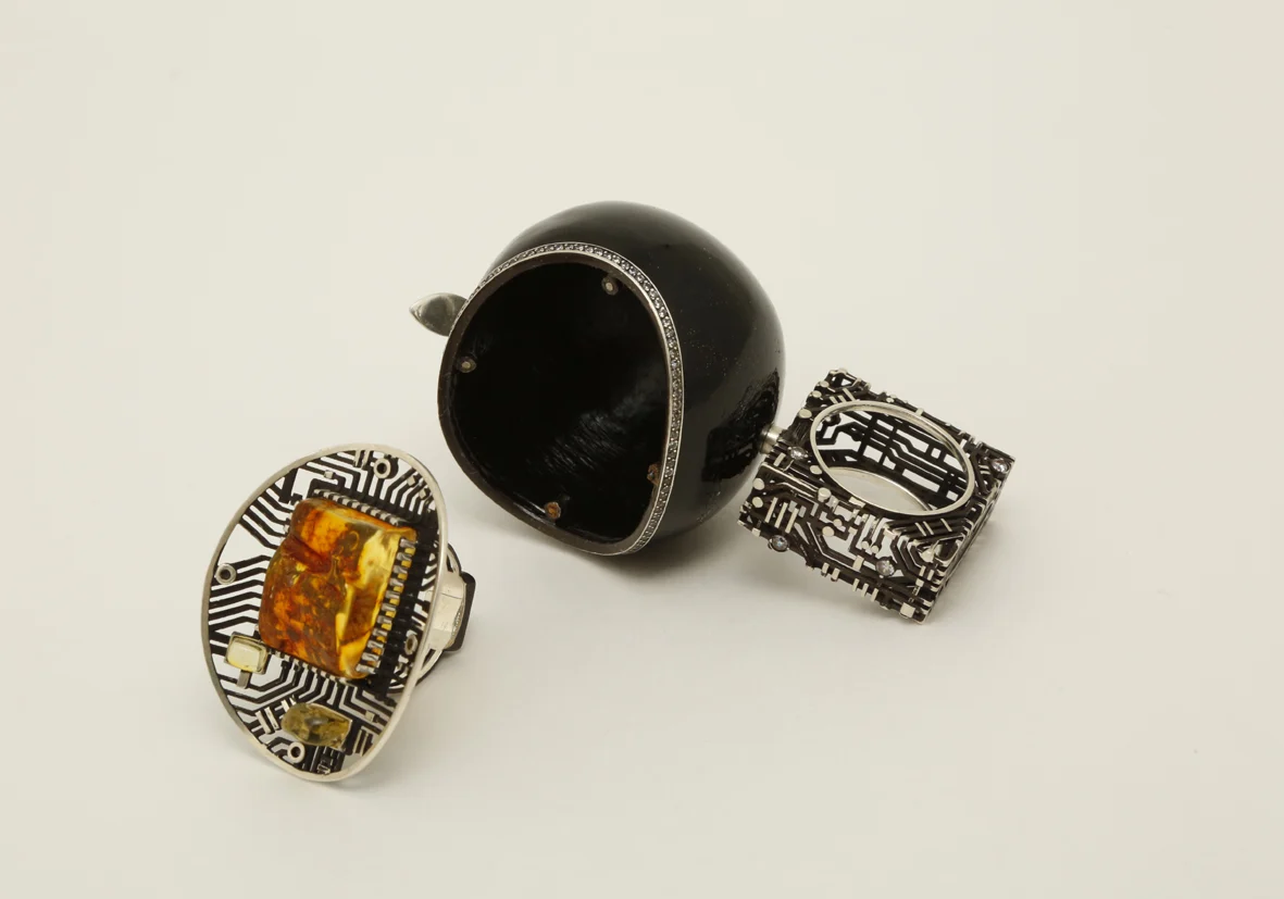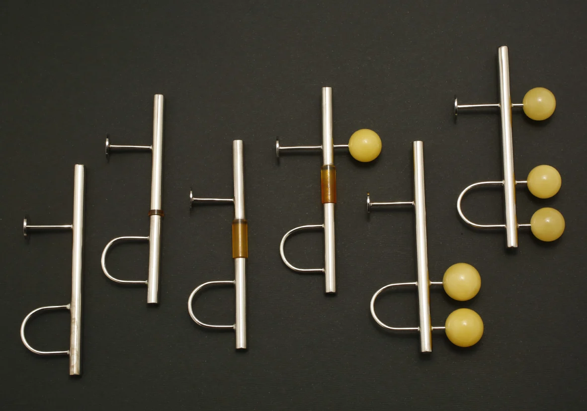 Kategoria „Produkty wykonane z kopali i imitacji bursztynu”: Nikita Naszekin (Rosja) – za wisiorki „Rails” (bursztyn modyfikowany, brąz, rod).