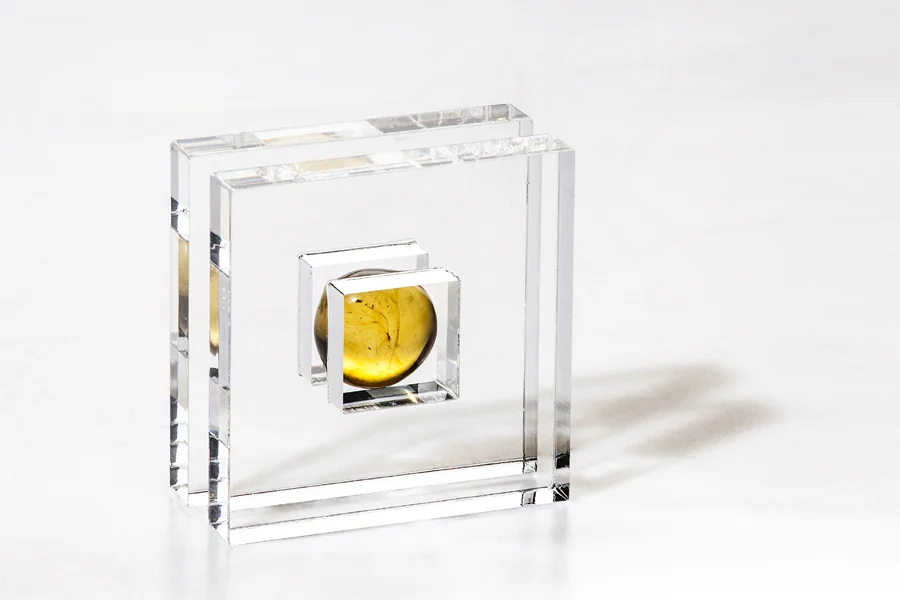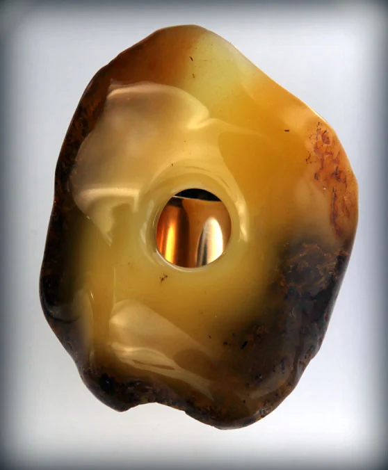 Biżuteria tworzy nieograniczoną przestrzeń do różnych działań artystycznych. Dlatego chętnie biorę udział w konkursach, których tematy zmuszają mnie do zajęcia stanowiska i odpowiedzi na pytania, które z tych tematów wynikają. Biżuteria jest dla mnie także komunikatem – idealna sytuacja to ta, kiedy wiele „mówi” już poprzez samo otoczenie, w jakim jest eksponowana. Dobrym tego przykładem jest prosty w formie pierścień mojego autorstwa wykonany z jednego kawałka pomarańczowego bursztynu, który został wykorzystany na czarnym tle plakatu wystawy „Kosmos” w Muzeum Bursztynu w Kaliningradzie – w tych okolicznościach wygląda naprawdę… kosmicznie. Staram się też dostrzegać różne elementy, które mogą być podkreślane właśnie przez biżuterię. I tak np. poprzez pracę eksponowaną na wystawie „Kosmos. Lem. Biżuteria” na początku tego roku w Galerii Urzędu Miasta Wrocławia zwróciłem uwagę na fakt, że zapach może być nośnikiem informacji z kosmosu. Oczywiście nie ma na to żadnych dowodów naukowych, ale jeśli zapach rzeczywiście tam istnieje, to musiał przecież z czegoś powstać – a to już mocno działa na wyobraźnię. W tym roku na konkurs Amberif Design Award „Skarb – Treasure – Bijou – Schatz” wykonałem pracę, w której bursztynowa kula jako idealna forma jest „uniesiona” przez dwie płytki pleksi – zabezpieczona, wyeksponowana, czytelna i podniesiona do czystej idei skarbu. Formy konceptualne są efektem poszukiwania nowego wyrazu i służą do wzbudzenia zainteresowania odbiorcy.