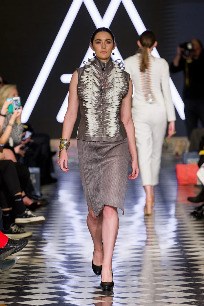 Kolekcja Resistance powstała z zamiłowania do architektury i eksperymentowania z nowymi formami przestrzennymi. Magdalena Arłukiewicz po raz kolejny zatarł granice między sztuką a modą. Inspiracje wnętrzami gotyckich katedr zaowocowały stworzeniem rzeźbiarskich detali – dostrzegalnych w misternym wykończeniu sylwetek, przywodzących na myśl kształty rozet czy sklepień żebrowych. Bazą do ukazania architektonicznej struktury strojów są klasyczne kroje uszyte z tradycyjnych tkanin w kolorach czarnym, białym, czerwonym, granatowym, srebrnym i złotym – poprzez swoją konstrukcję sprawiają wrażenie odbitych w krzywym zwierciadle. Wyrazista w formie biżuteria – czasem klasycznie elegancka, czasem wręcz ekstrawagancka – idealnie podkreśla konstrukcyjną trójwymiarowość strojów.