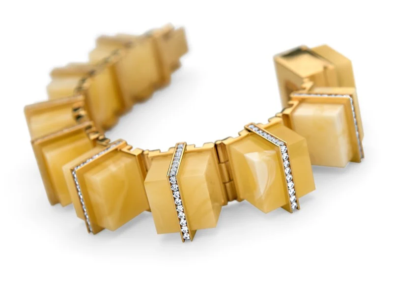 Tę różnorodność zobaczymy także na wystawie. Lidia Popiel, która jest także pierwszą Ambasadorką Bursztynu (inne ambasadorki to: Monika Richardson, Kayah oraz Irena Santor), spojrzała na bursztyn z perspektywy fotografki, ale też i kobiety od dawna zakochanej w bursztynie, która chciałaby zwrócić uwagę innych (…nie tylko kobiet) na piękno bursztynu. Ona sama zwróciła uwagę na różne aspekty tworzenia biżuterii z bursztynem bałtyckim, m.in. łączenia go z nieoczywistymi materiałami. Reprezentantem tego nurtu będzie na wystawie Marcin Tymiński, który łączy naturalne kamienie bursztynowe z syntetycznymi polimerami, tworząc spektakularną biżuterię będącą de facto małą formą rzeźbiarską. Zachwyciła ją także kunsztowna i ekskluzywna biżuteria – w szczególności bursztyn w szlifach tradycyjnie stosowanych do kamieni szlachetnych – Marcina Wesołowskiego z NAC Amber, który doskonale wie, czego pragną kobiety. Na wystawę Lidia Popiel wybrała też bursztynowe korale Danuty Burczik-Kruczkowskiej, które – dzięki nowoczesnemu lookowi – w niczym nie przypominają tych tradycyjnych, z którymi ciągle jeszcze jest kojarzony bursztyn. I – niejako plasującą się na przeciuwległym biegunie do korali – określaną mianem architektonicznej biżuterię Jacka Ostrowskiego, słynącego z eksperymentów z materiałem i formą.
