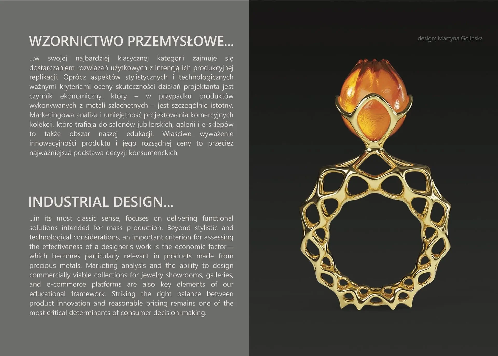 To nie jest kolejna wystawa „z bursztynem w tle”. To śmiała opowieść o tym, jak młode pokolenie projektantów eksperymentuje z materiałem, który przez dekady funkcjonował w ograniczonych estetycznych ramach. W centrum uwagi znajduje się bursztyn – organiczny, lokalny, pełen potencjału. A obok niego – futurystyczne technologie: druk 3D, modelowanie w VR/AR, cyfrowe skanowanie, ale też odważne formy wykonane tradycyjnymi technikami jubilerskimi.