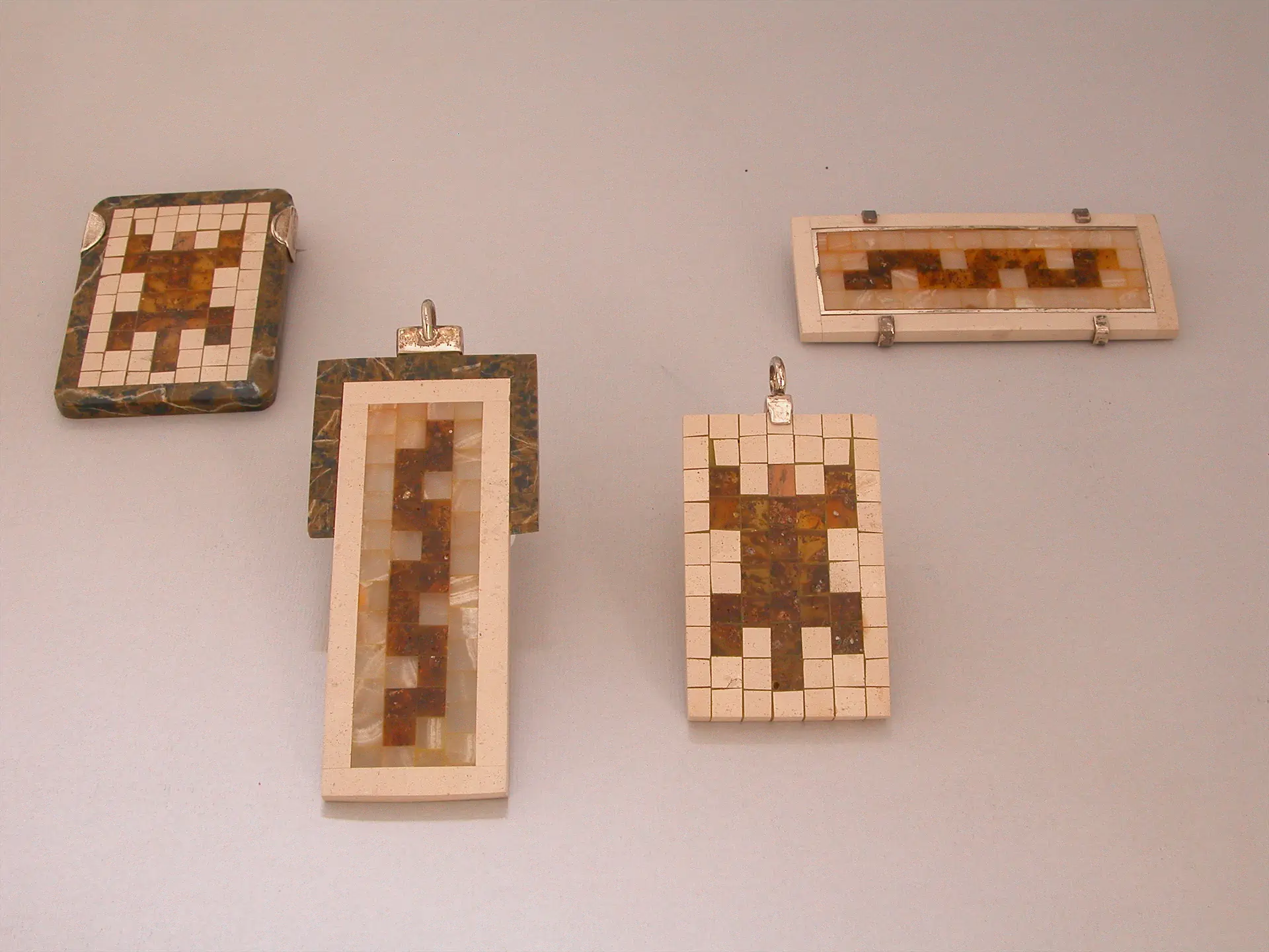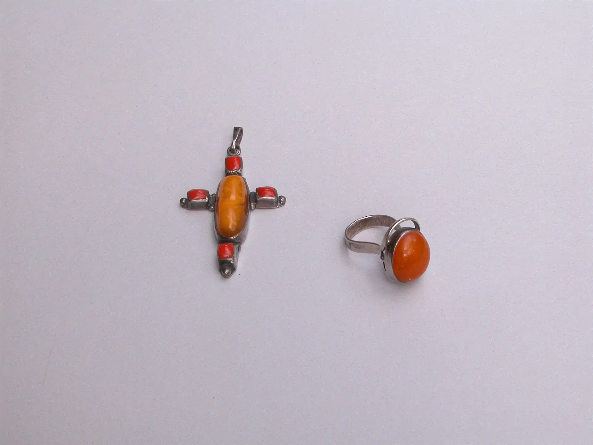 Spośród prac autorów stanowiących czołówkę polskiego złotnictwa artystycznego w latach 60. i pierwszej połowie lat 70., wyróżnia się w zbiorach Muzeum Sztuki Złotniczej kilka obiektów z bursztynem Olgierda Vetesco, z wykształcenia malarza i grafika, przez 20 lat działającego także w dziedzinie biżuterii. Charakteryzuje je typowa dla tego artysty klarownością  rysunku, wysmakowaną kompozycją  i subtelną, dyskretną elegancją. W pierścionku  z lat 60. z miodowym bursztynem – jednej z prac powstałych na początku złotniczej drogi artysty, widać zapowiedź stosowania w jego twórczości rozwiązań przestrzenno-rzeźbiarskich. Przy całkowitym braku ornamentu decydującą rolę odgrywa konstrukcja, której znamienną cechą są prześwity. Bardzo dyskretna, oszczędna, na pozór prosta oprawa, tym wyraziściej eksponuje urodę gładkiego, bursztynowego kaboszonu. O tym, że taki sposób myślenia o podkreślaniu piękna kamieni minimalistyczną oprawą pozostał artyście bliski przez cały czas – mimo różnorodności rozwiązań plastycznych i stosowanych technik – świadczy krzyżyk powstały u schyłku jego życia, w 1983 roku. Centralnie wyeksponowany, podłużny, miodowo-mleczny bursztyn, w zestawieniu z  tworzącymi ramiona czterema niewielkimi koralami, daje całość o przemyślanej konstrukcji, dystyngowaną, prostą w formie i wyrazie.