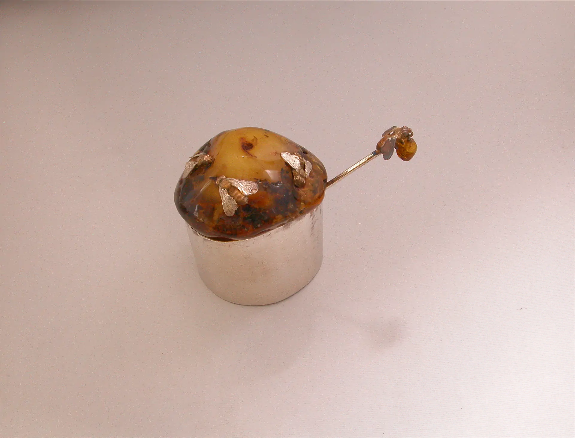 Częste porównywanie bursztynu do miodu znajduje swój wyraz w pełnej poetyckiego uroku pracy Kamilli Rohn etiudzie „Na czarkę  i miód” – naczynku, którego przykrywką jest apetyczna bryła miodowego bursztynu, na którym przysiadły srebrne pszczoły. Prace z tego zespołu obrazują sposób myślenia współczesnych twórców sztuki złotniczej o bursztynie, daleko odbiegający od tego, co w potocznym rozumieniu mieściło się przez dziesięciolecia pod pojęciem „biżuterii z bursztynem”. Część z tych obiektów eksponowana jest obecnie w Muzeum Bursztynu oddziale Muzeum Historycznego Miasta Gdańska, któremu zostały czasowo użyczone w ramach współpracy między naszymi muzeami.
