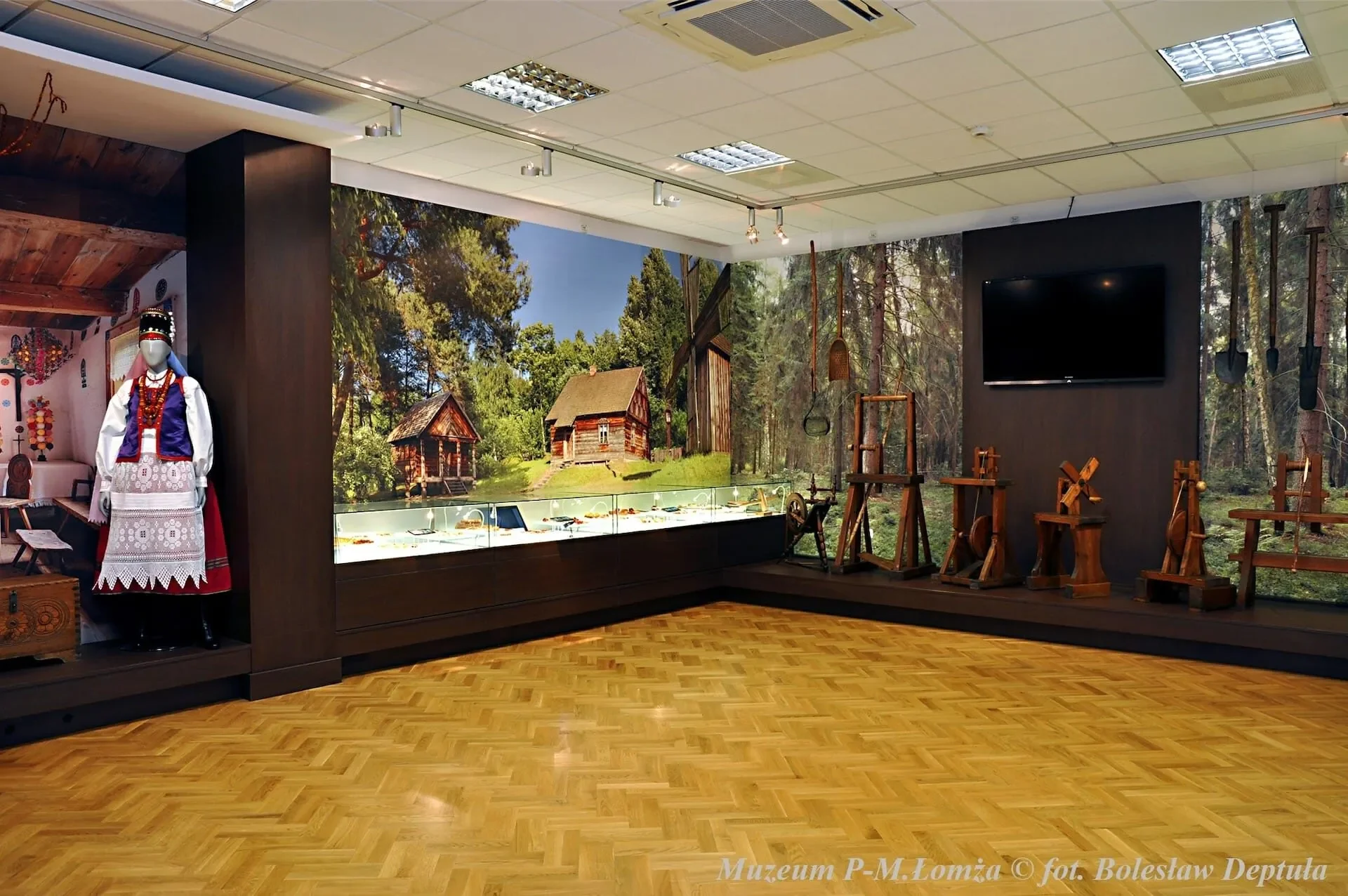 Wystawa bursztyniarska w Muzeum w Łomży udostępniona była już od 10 kwietnia do 5 października 1950 roku. Była to pierwsza powojenna w Polsce czasowa ekspozycja prezentująca bursztyn. W 1958 roku zaprezentowano stałą wystawę „Jantar – bursztyn w dorzeczu Narwi Środkowej”. W 1980 roku Muzeum przeniosło się do wyremontowanego budynku przy ul. Krzywe Koło 1 i w tym samym roku udostępniono zwiedzającym wystawę stałą „Bursztyn dorzecza Narwi Środkowej” – w zasadzie przeniesioną z poprzedniej lokalizacji, w układzie opracowanym w 1958 roku przez Adama Chętnika. Prezentowana była do 2006 roku.