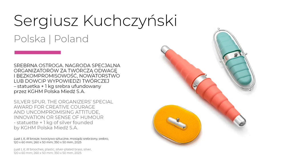 The Legnica SREBRO 2025 Festival is not just a competition - it is a multifaceted celebration of contemporary jewellery that attracts artists, curators, collectors and art lovers from all over the world every year. The programme of this year's edition includes numerous individual and collective exhibitions presenting the latest works of artists from Poland and abroad, as well as an international symposium devoted to current trends and challenges in goldsmithing art. As every year, Legnica was transformed into a space open to experiment, dialogue and creative brilliance. The SREBRO Festival is a place where jewellery speaks volumes - about emotions, about society, about ourselves.