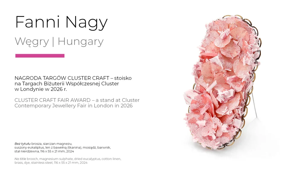 The post-competition exhibition will be presented at the Legnica Art Gallery from April to July 2025, as the centrepiece of the Legnica SILVER Festival - one of the largest and oldest artistic jewellery festivals in Europe.