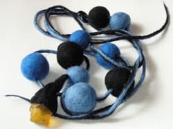 Filc ma bardzo głębokie tradycje historyczne. Skandynawowie używają go do wytwarzania odzieży. Plemiona wędrowne Nomadów i Mongołów budowały jurty – materiał ten nie przepuszczał wody i utrzymywał ciepło. Na sznurki filcowe starożytni nawlekali korale, kościane ozdoby etc. Spodnie góralskie są też z filcu – nawet myślałam, żeby pojechać w góry i znaleźć materiały o naturalnych kolorach. Interesuje mnie też farbowanie – w przeszłości sama farbowałam sznurki jutowe, jedwabie i bawełnę, które wykorzystywałam w moich starszych pracach. Aczkolwiek runo wełniane, z którego wykonuję filc, otrzymuję już w gotowych kolorach.
