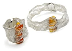 Zdjęcie: Grand Prix Mercurius Gedanensis 2007 - Paweł Kaczyński, naszyjnik i bransoleta "Blask" ze srebra i bursztynu