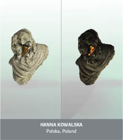 Martin Radt z Niemiec – Nagroda Bursztynowa ufundowana przez Międzynarodowe Stowarzyszenie Bursztynników (1 kg bursztynu): Chwila brutalności i surrealizmu – przekłucie bryłki bursztynu przez agrafkę, której to agrafki nie możemy rozpiąć, co czyni z tej chwili moment ukrytej kinetyki.