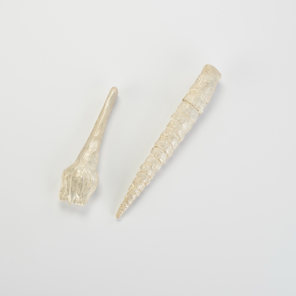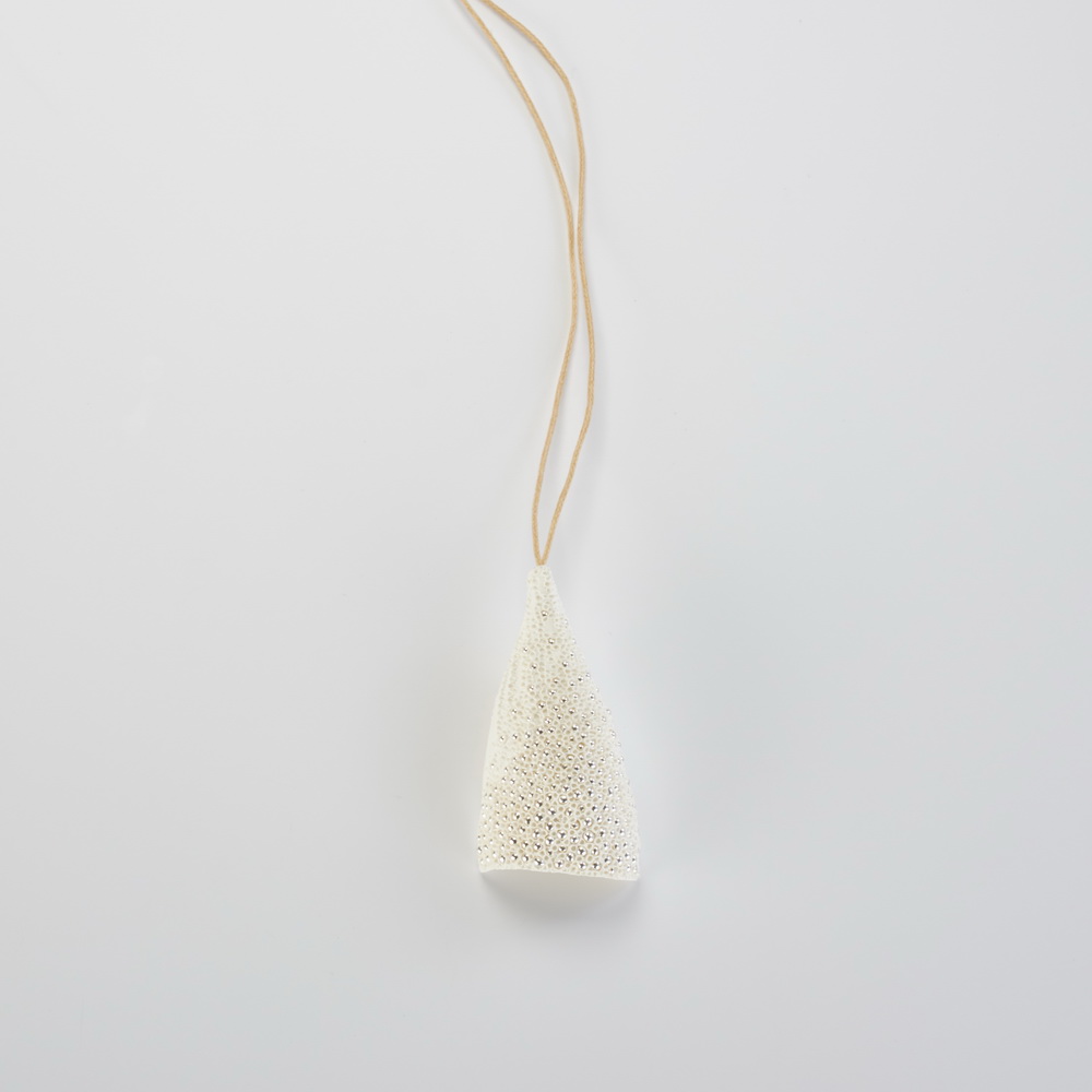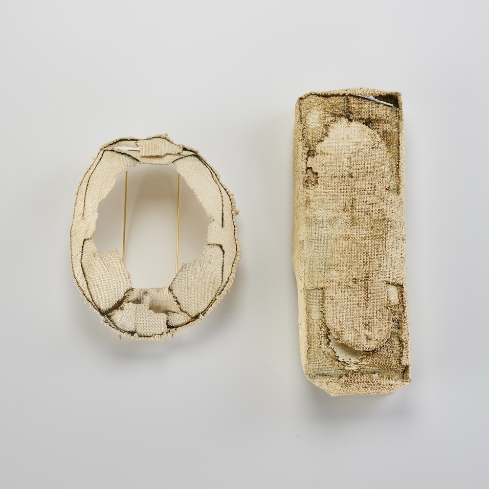 „Konstrukcja z płótnem. Technika formowania galwanicznego służy do stabilizacji struktury, co wygląda dość zaskakująco. Srebro zapewnia interesującą powierzchnię, która nadal wygląda jak tkanina. Można tu zaobserwować innowacyjny rozwój technologiczny”
