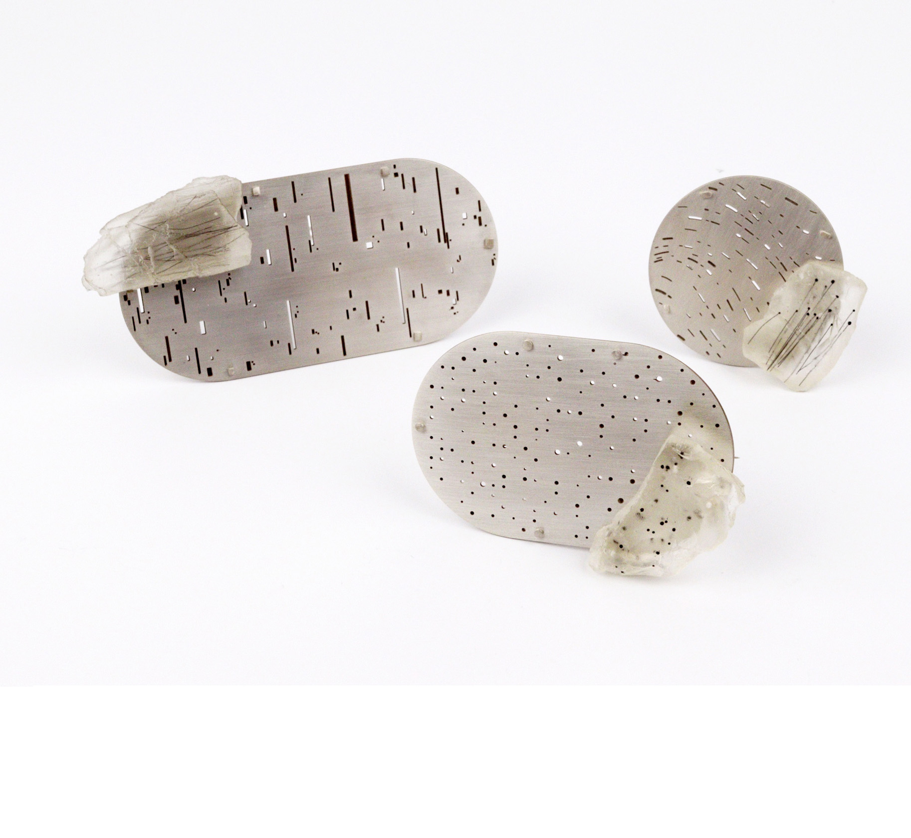 Annarita Bianco (Włochy) - brosza, grawerowane laserowo srebro, e-odpady, żywica epoksydowa, 2020
