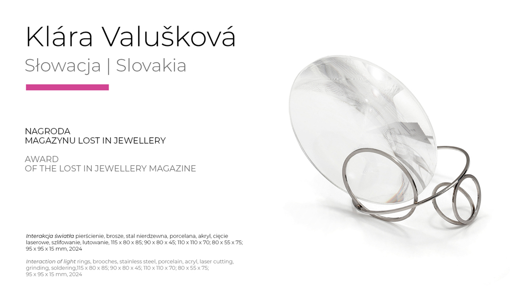 • Antal Zilahi (Węgry) – twórca poetyckiej, lustrzanej broszy, która w subtelny sposób gra z odbiciem i perspektywą – 2. nagroda