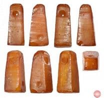 Fot: Zawieszka bursztynowa znaleziona w Truso (fot. L.Okoński)