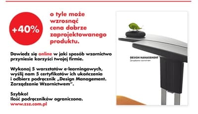 Osoby, które wykonają 5 warsztatów e-lernigowych i prześlą do IWP certyfikaty ich ukończenia otrzymają podręcznik „Design Management. Zarządzanie Wzornictwem”. Ilość podręczników ograniczona.