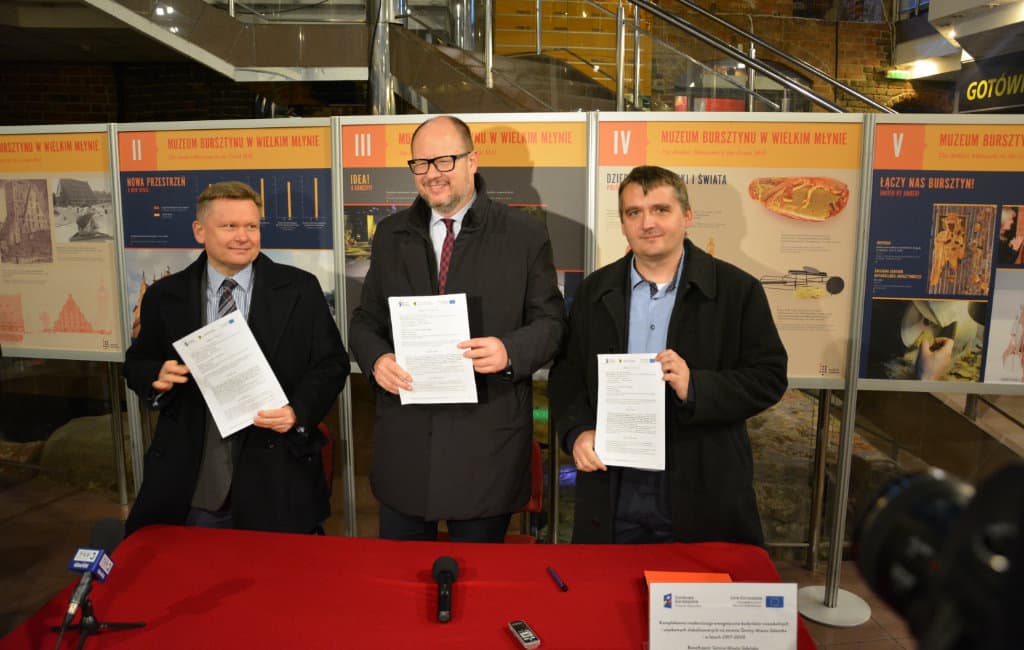 Umowę z firmą M-Invest, która wygrała przetarg na termomodernizację XIV-wiecznego obiektu, podpisali prezydent Gdańska Paweł Adamowicz oraz dyrektor Muzeum Gdańska Waldemar Ossowski. „Dzisiejszy dzień to początek drogi. Chcielibyśmy, aby Muzeum Bursztynu w Wielkim Młynie było gotowe za trzy, cztery lata” – powiedział Waldemar Ossowski.