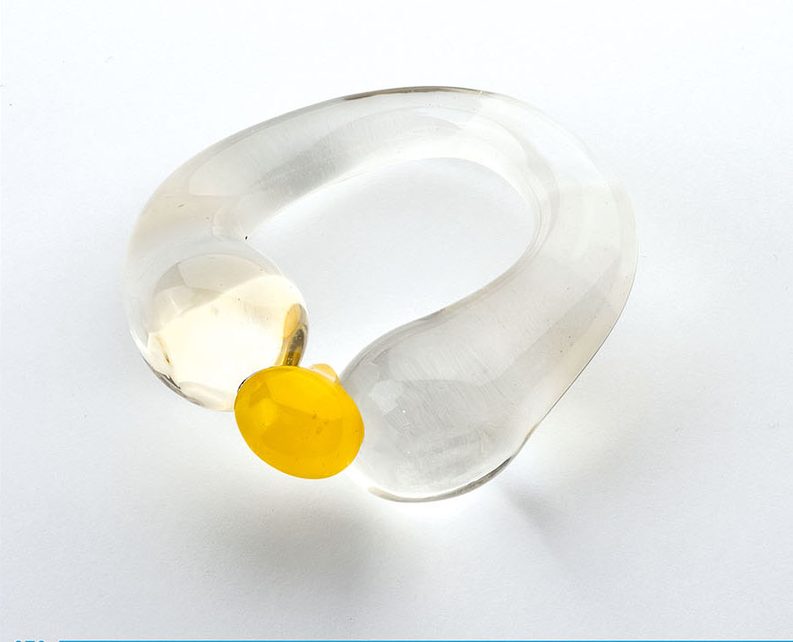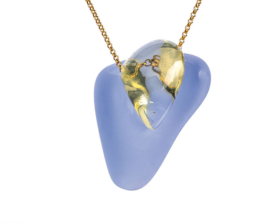 Stylistyka baniek mydlanych zgrupowanych w gęsty klaster to jeden z najbardziej odkrywczych śladów projektowych, które pojawiają się w ostatnim czasie na wszystkich znaczących festiwalach designu i wydarzeniach wystawienniczych na świecie. Hasło BLOB mogłoby być dzisiaj zarówno tytułem serii filmów animowanych, jak i kolekcji autorskiej mody, designu i wreszcie biżuterii. Odważne formy mebli i oświetlenia coraz częściej sprawiają wrażenie żywych organizmów, które tylko na chwilę zamarły w bezruchu. Bursztyn bałtycki ze względu na swoje organiczne pochodzenie, amorficzną strukturę i przezroczystość wydaje się idealnie wpisywać w ideę bloba, stanowiąc jednocześnie wymarzony materiał do rzeźbiarskich interpretacji.