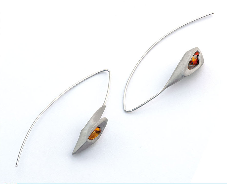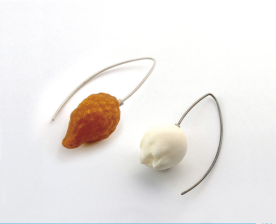 Laura Ortega Nieto: kolczyki - bursztyn bałtycki, polamid (CAD / CAM), srebro