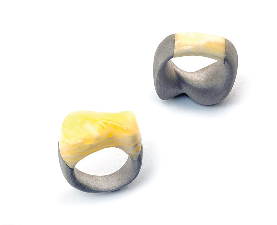 Damian Grzelak: pierścionki - bursztyn bałtycki, srebro rodowane