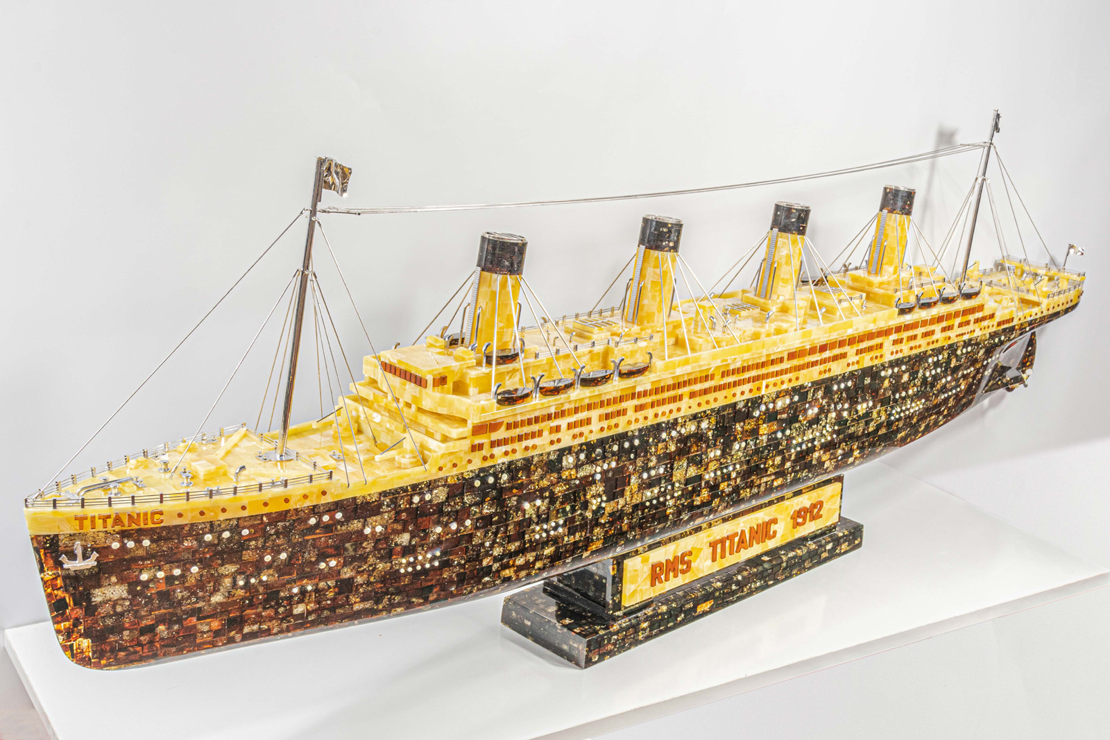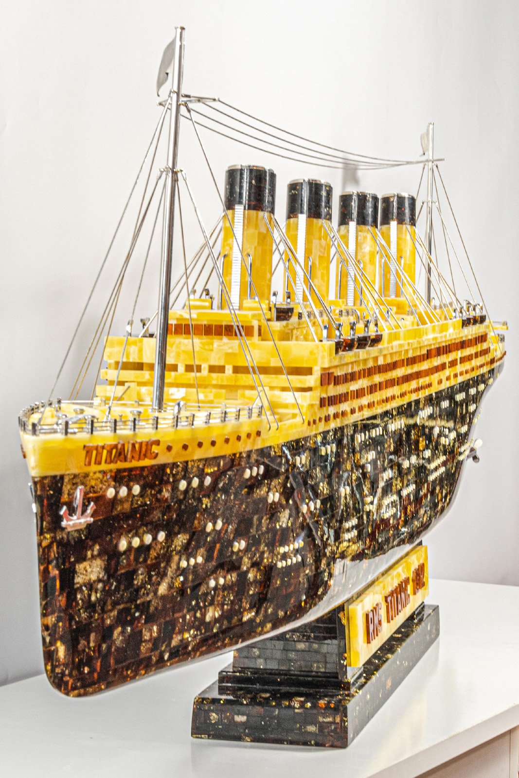 Rekordowa rzeźba z bursztynu ma dokładnie 1,532 m długości, 0,154 m szerokości oraz 0,367 m wysokości. Do jej wykonania zużyto ok. 40 kg wyselekcjonowanego (z ponad 100 kg!) bursztynu, by wybrać idealny żółty i wiśniowy odcień barwny. Wyrzeźbienie bursztynowej kopii najsłynniejszego chyba statku zajęło około 1 miesiąc ciągłej pracy – średnio po 12-14 godzin dziennie, 7 dni w tygodniu (oryginał powstał w 26 miesięcy – i każdy jest wyjątkowy na swój sposób).