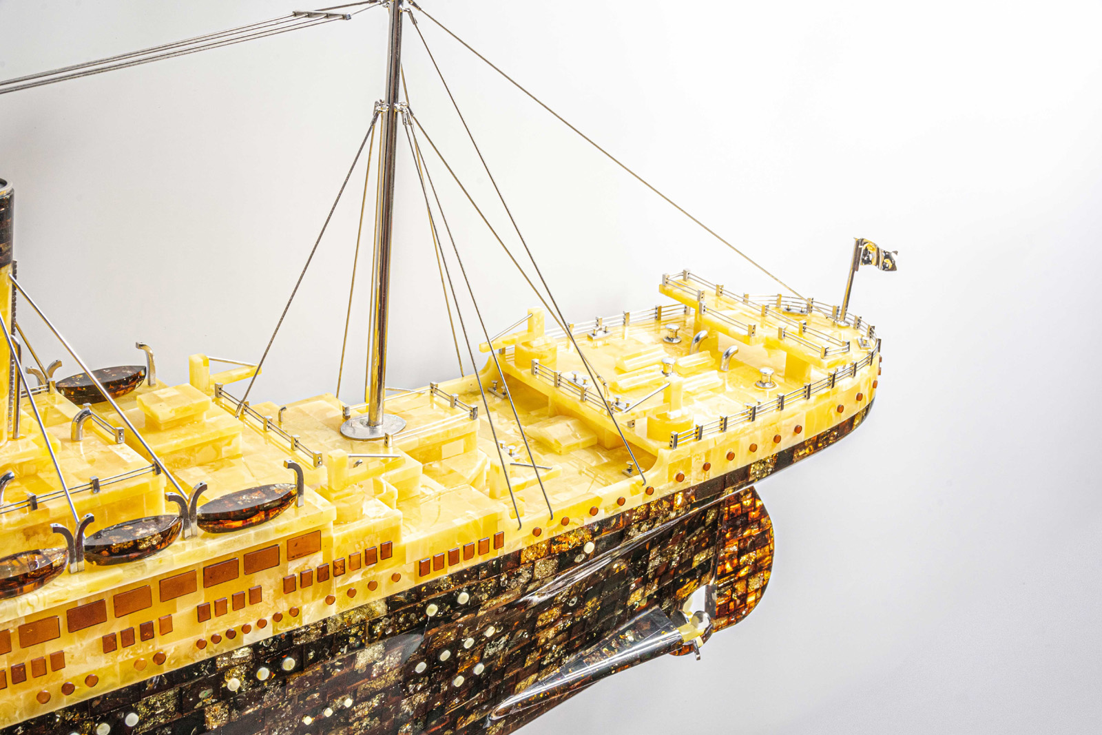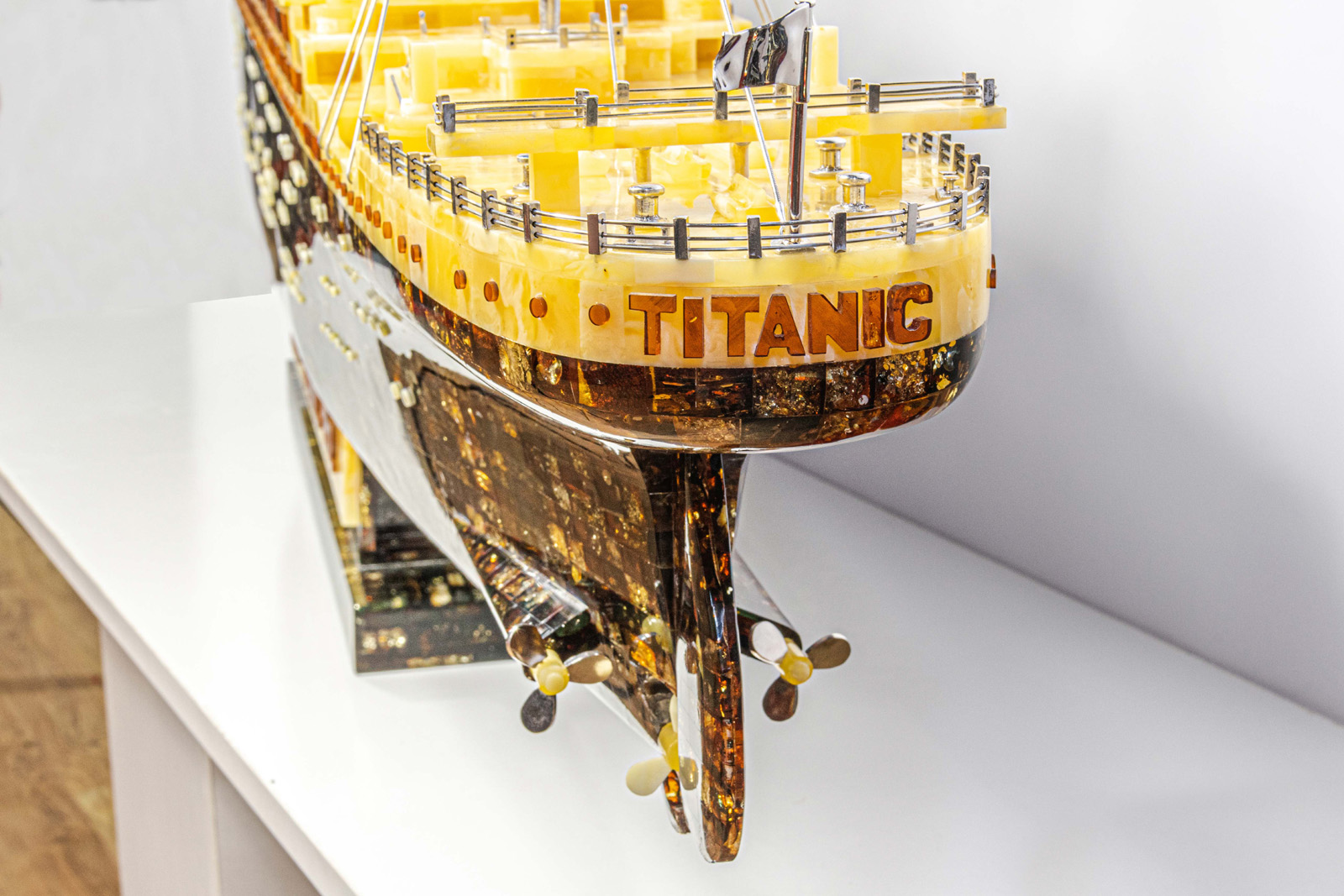 Choć z pewnością będzie to najsłynniejszy (po oryginale) Titanic, to nie jest to pierwsza bursztynowa kopia tego statku, jaka powstała w pracowni Tomasza Ołdziejewskiego. Pierwszą wykonał tuż po polskiej premierze filmu „Titanic”, kiedy pod koniec filmu zauważył zapłakane oczy żony (jak sam przyznał, jego oczy też jakoś nieoczekiwanie zwilgotniały), i pomyślał, że ten statek i związana z nim historia filmowa budzą ogromne pokłady emocji. „Te wcześniejsze kopie były mniejsze, nie były w całości wykonane tylko z bursztynu i nie były tak doskonałe w proporcjach jak ta ostatnia. Po wykonaniu tych pierwszych kopii wiedziałem o tym statku dosłownie wszystko – gdzie stały ławeczki i gdzie były barierki, których trzymali się Kate i Leo” – tłumaczy.