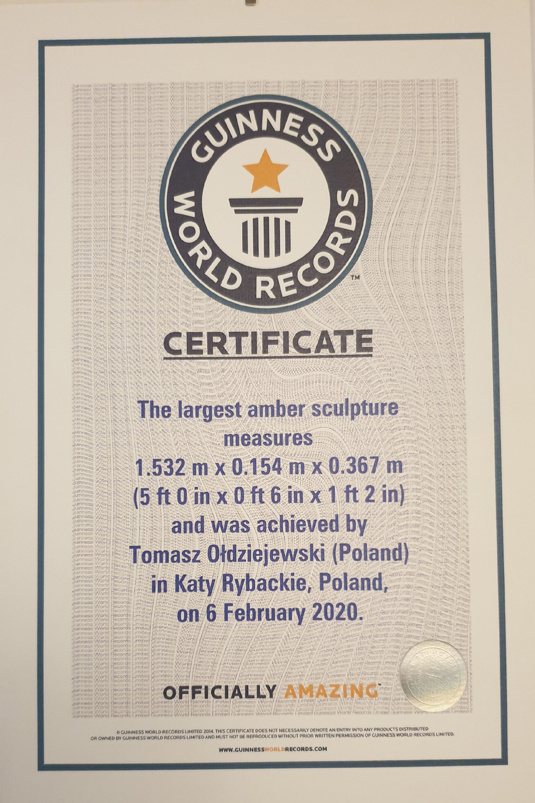 Specjalnie dla bursztynowego Titanica w Księdze Rekordów Guinnessa została stworzona nowa kategoria: największej na świecie rzeźby z bursztynu. I udało się – po miesiącach oczekiwania spełniły się marzenia Tomasza Ołdziejewskiego o światowym rekordzie.
