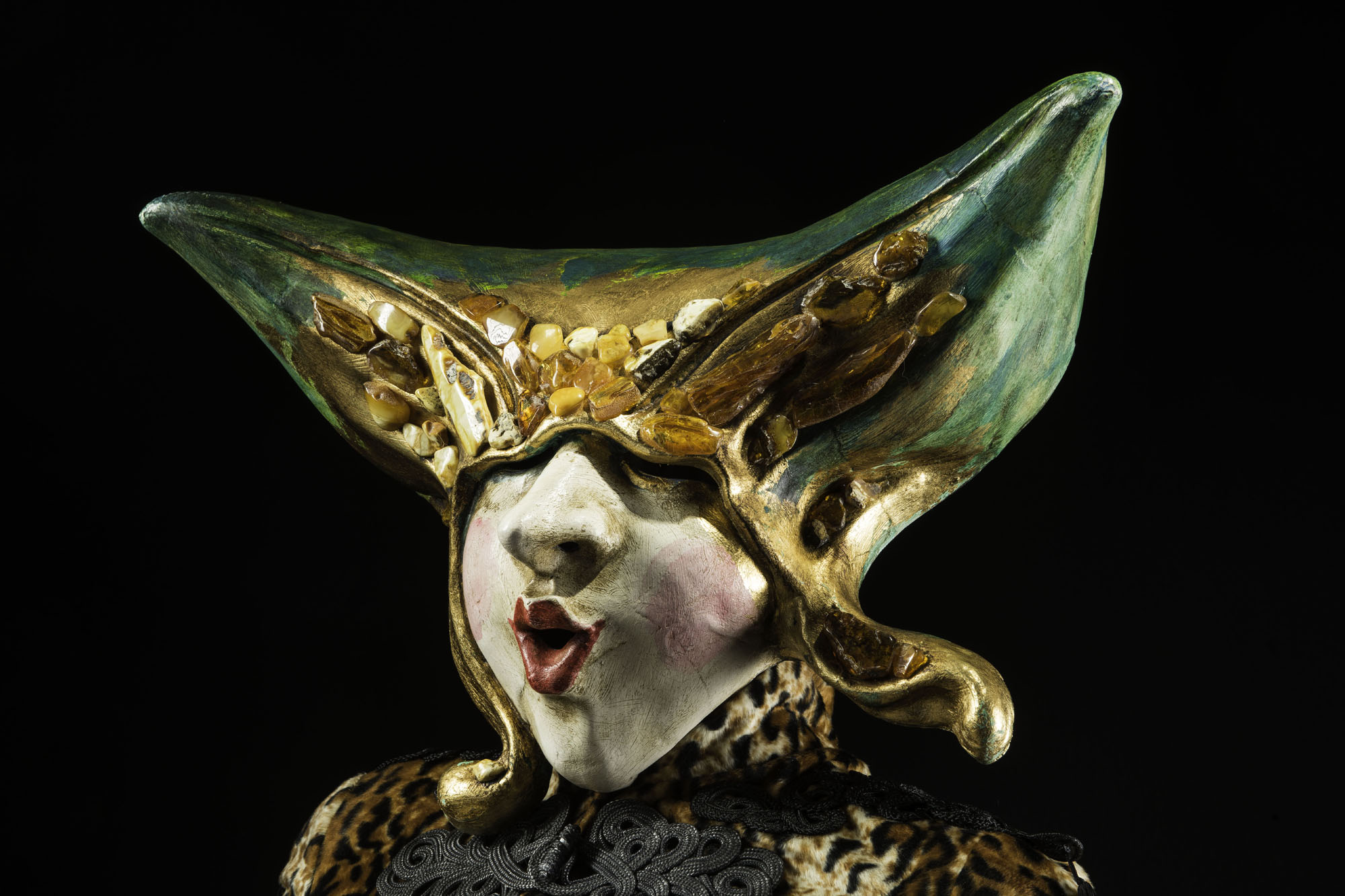 Sergio i Massimo Boldrinowie - maska wenecka zdobiona bursztynem, dar autorów. Fot. Muzeum Gdańska