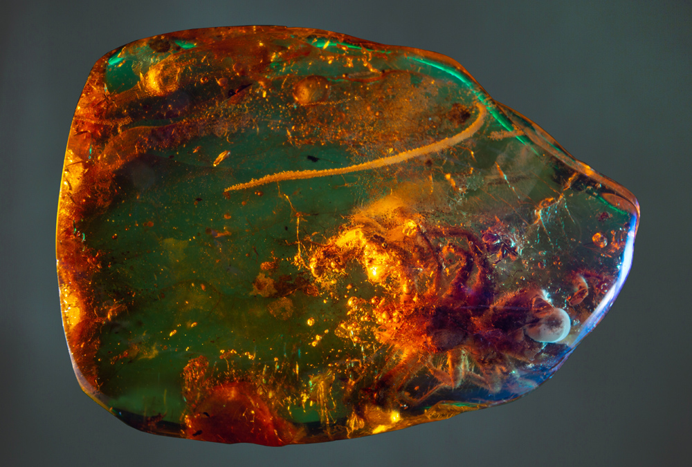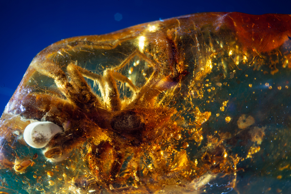 Unikatowa inkluzja pajęczaka należącego do rzędu Solifugae (solfugi) w kolekcji Muzeum Inkluzji w Bursztynie UG. Fot. Rafał Mielczarek