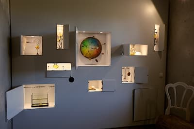 Poszukując nowych rozwiązań artystycznych, właściciele Galerii-Muzeów Bursztynu, Virginija i Kazimieras Mizgiris, wpadli na pomysł zorganizowania w jednym z wyremontowanych pomieszczeń muzealnych wystawy, pozwalającej zwiedzającym obcować z bursztynem poprzez sztukę.