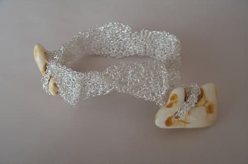 W swojej pracy Bogumiła Adamska wykorzystuje autorską metodę tkania i szydełkowania srebra. Używa wyłącznie naturalnych kamieni – w zdecydowanej większości bursztynu.