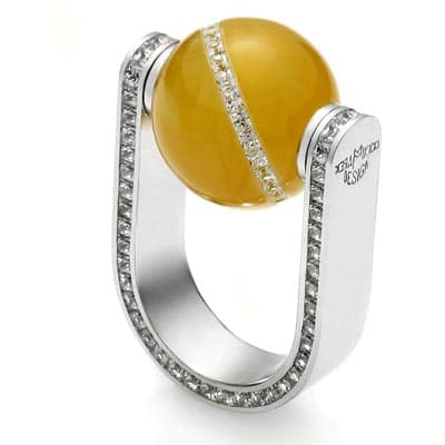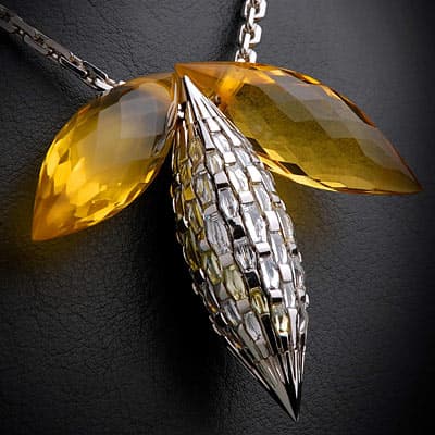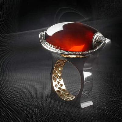 Marek Mikicki: Początkowo na konkursy organizowane na targach Amberif zgłaszałem biżuterię niebursztynową, ale nie miałem większych szans na nagrody. Owszem, klepano mnie po ramieniu i gratulowano, moje pomysły i wykonanie robiły wrażenie, ale na tym się kończyło. Dlatego wykorzystałem fakt, że to przecież targi bursztynu, i zaprezentowałem bursztyn w nieco innej formie z innym materiałem w oprawie. Okazało się to trafną decyzją, choć generalnie szlifowanie i oprawianie bursztynu nie jest moją codzienną pracą. Firma, którą prowadzę, specjalizuje się w produkcji biżuterii z białego i żółtego złota z kamieniami syntetycznymi, a w obróbce bursztynu jestem tylko amatorem.