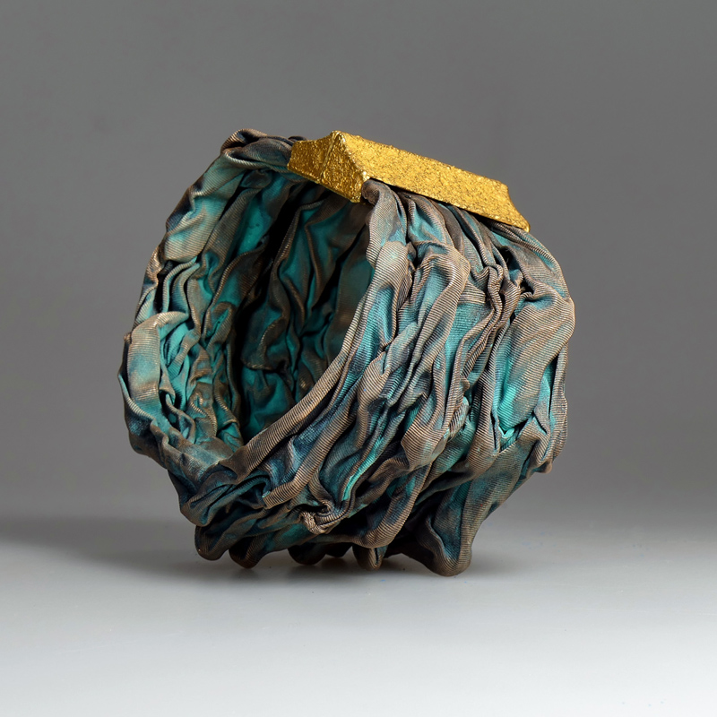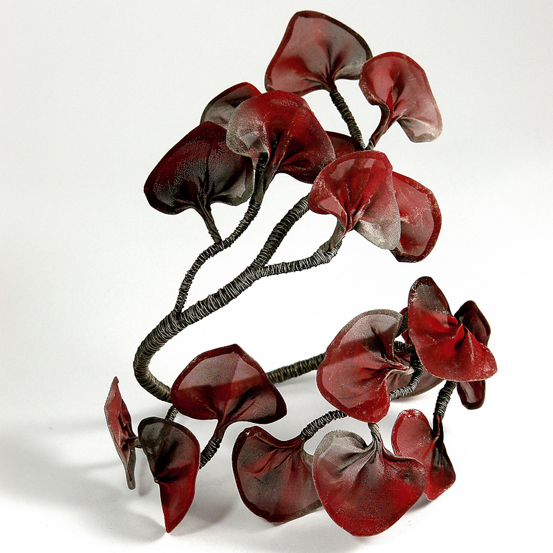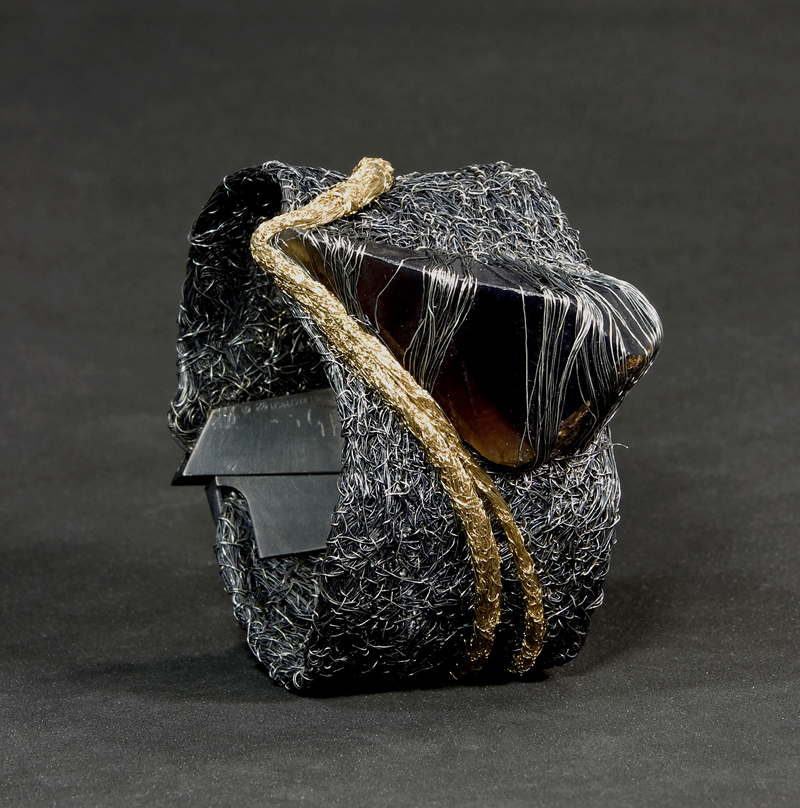 Bransoleta jest tu dobrym przykładem, bo oddaje mój sposób myślenia o biżuterii. Lubię, kiedy praca sama się broni, a jej przekaz jest na tyle klarowny, że nie wymaga opisu. Szkoda tylko, że na wystawie nie da się jej dotknąć, by lepiej zrozumieć, na czym polega jej przewrotność: została ona wykonana z 0,2-milimetrowej blachy – sprawiającej wizualnie wrażenie ciężkiej, ale w rzeczywistości tak delikatnej, że niemal czuć naturę wypełniającego poduszkę gęsiego pierza. Chciałem w ten sposób pokazać, jak łatwo można się pomylić w ocenie otaczających nas przedmiotów i zjawisk. I jak łatwo oszukać nasze zmysły…