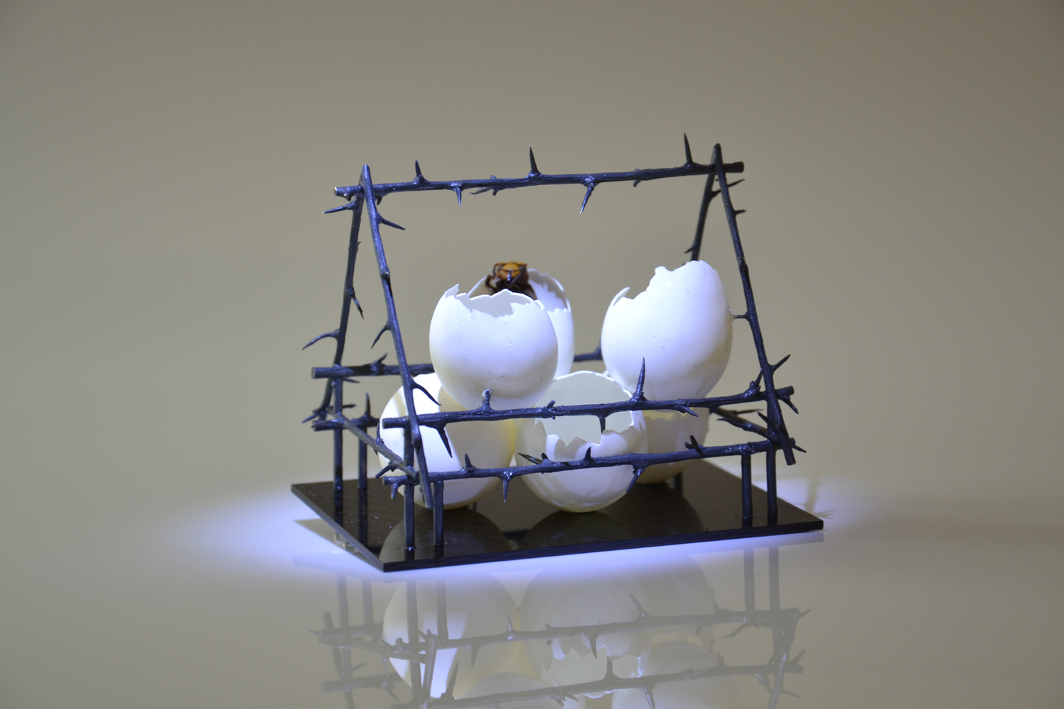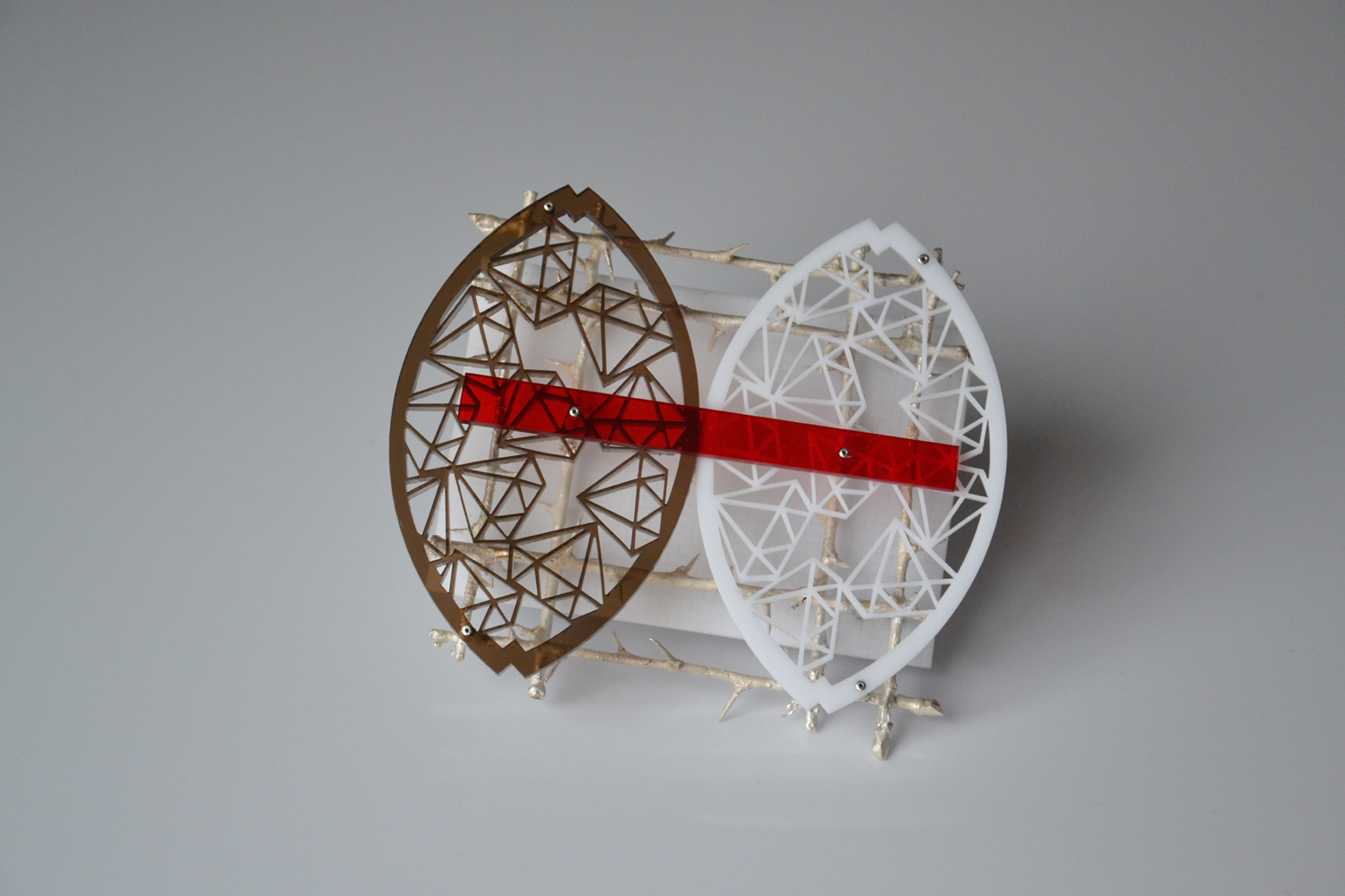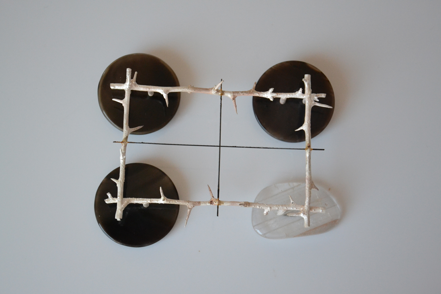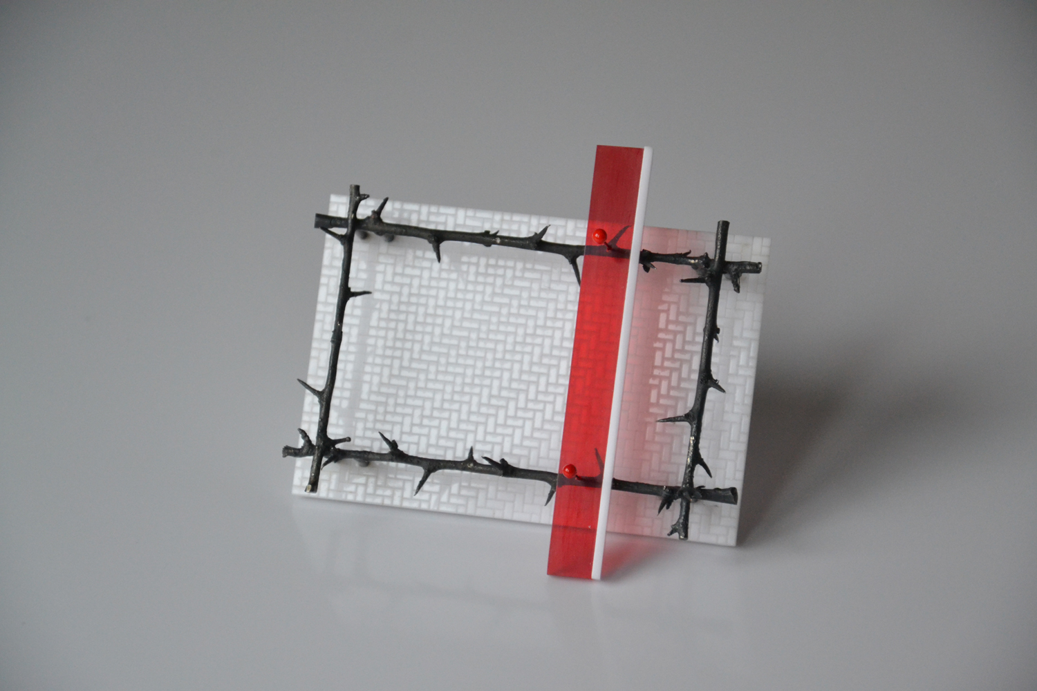 Zapewne to te cierniowe ramy budują takie wrażenie. Grodzimy się, izolujemy przed wszystkim i wszystkimi. Wszędzie widzimy zagrożenie, budujemy zasieki. Popadamy w paranoję. Ale też taką mamy aktualnie sytuację na świecie... W ten sposób nawiązuję też do 13 grudnia, który w znaczący sposób zmienił naszą mentalność. Nie chciałem jednak uprawiać niepotrzebnej martyrologii, więc świadomie nie sięgnąłem po żołnierzyki czy czołgi. I bez nich te brosze oddają sytuację ogólnego zagrożenia wywołanego takimi zjawiskami jak zakupoholizm, wymieranie gatunków, zalew śmieci, permanentna inwigilacja… Powoli zapominamy, że istniały kiedyś miejsca, w których czuliśmy się wolni i bezpieczni…