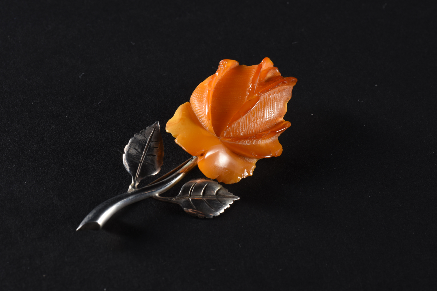 Broszka "Róża" - Państwowa Manufaktura Bursztynu w Królewcu.