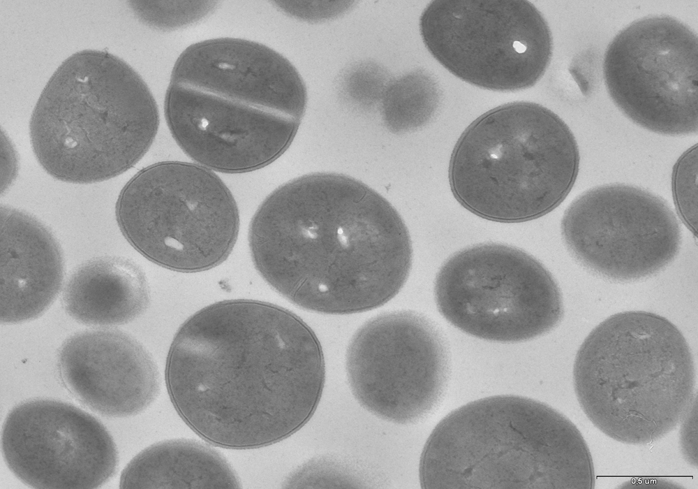 Komórki gronkowca złocistego, zdjęcie z mikroskopu elektronowego. Fot. Igor Kaczmarczyk