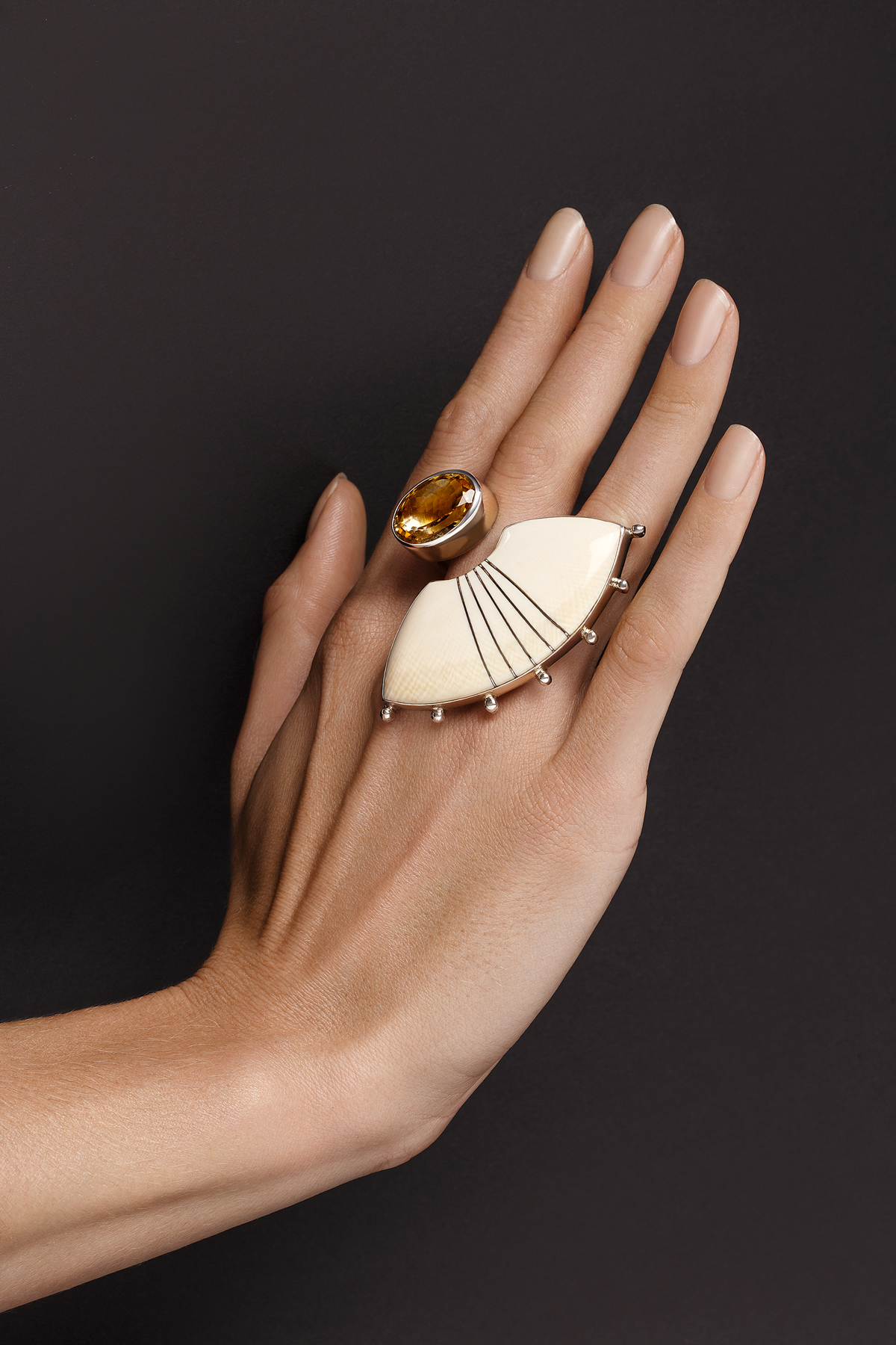 Cieszę się, że tak pozytywnie na Ciebie działają. Ludzie często reagują na moją biżuterię, mówią mi też o emocjach, jakie ona w nich wywołuje. Szczególnie utkwiła mi w pamięci starsza kobieta z Niemiec, która koniecznie chciała zakupić pierścionek z symbolami łodzi i księżyca. Mimo że nie pasował na jej palec, kupiła go i wyjaśniła, że wcale nie ma zamiaru go nosić, tylko zabrać ze sobą do trumny, by opłacić nim przeprawę na drugi brzeg Styksu. A więc i tak można ją wykorzystać (śmiech).
