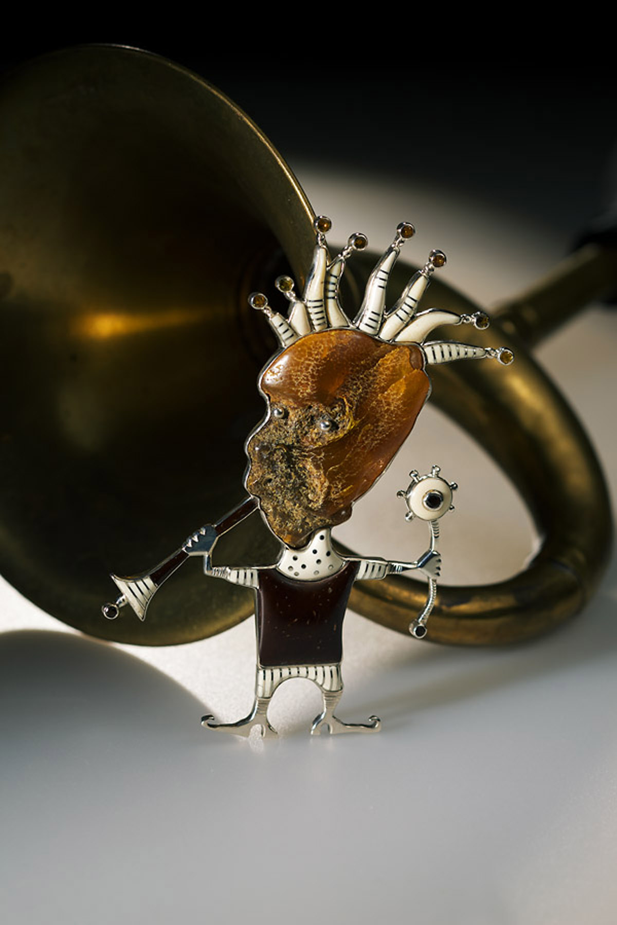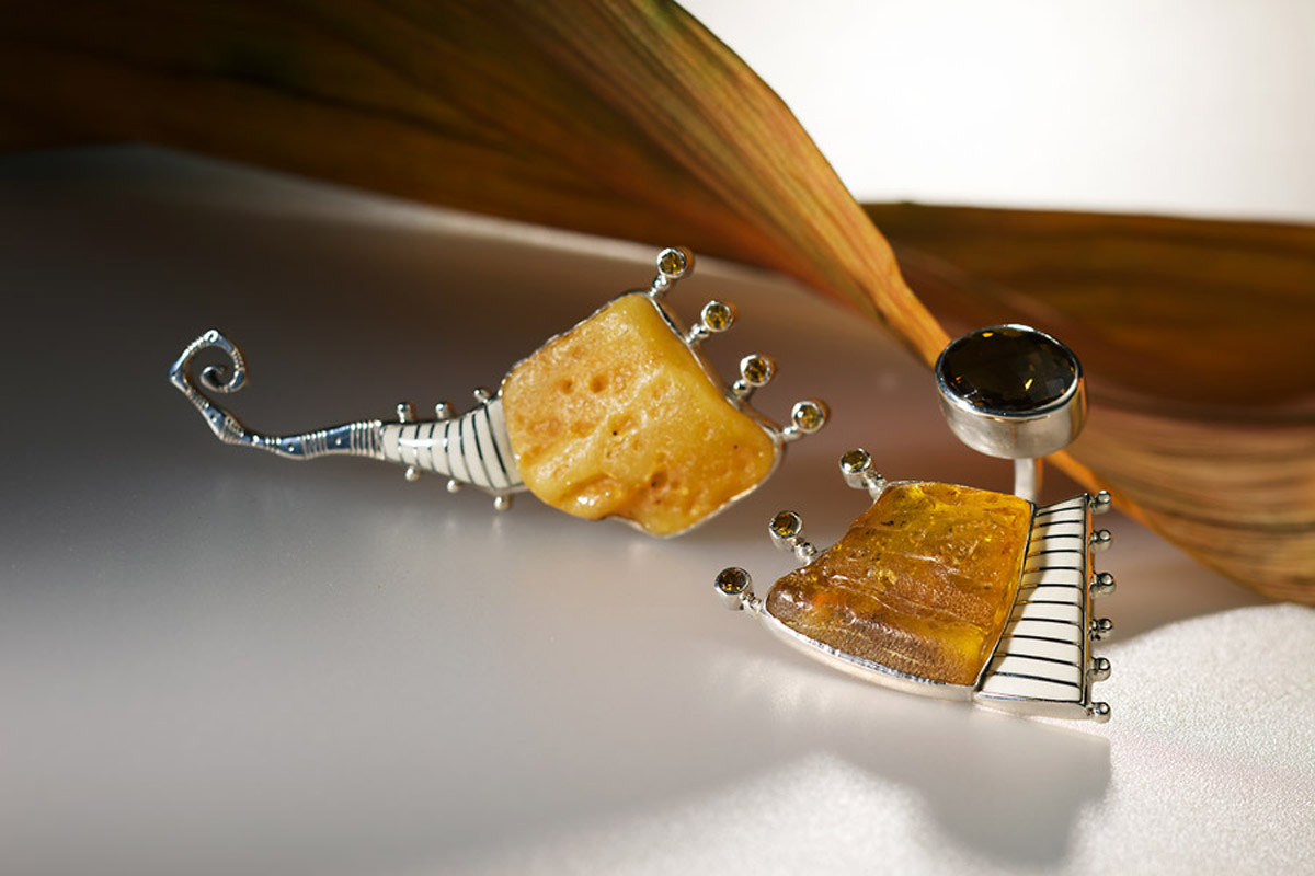 Choć to nasz narodowy kamień, miałem z nim początkowo dość trudną relację. Pamiętam czasy, kiedy w Rydze było mnóstwo sklepów i sklepików z biżuterią z bursztynem, która bardzo wiele pozostawiała do życzenia pod względem wzornictwa i jakości. Ten obraz wrył mi się w pamięć tak głęboko, że nawet kiedy już zacząłem tworzyć biżuterię, to trzymałem się z dala od bursztynu. Zostałem trochę zmuszony do sięgnięcia po złoto Bałtyku całkiem niedawno, bo w 2015 roku – z okazji wyboru Rygi na Europejską Stolicę Kultury nieistniejąca już niestety Galeria Putti zaprosiła mnie do udziału w międzynarodowej wystawie „Bursztynowy Szlak”. Pamiętam, że wykonałem wtedy prace, w których użyłem bryłek znalezionych niegdyś na nadbałtyckiej plaży. Pamiętam też, że w tej wersji bursztyn nawet mi się spodobał (śmiech). Więc potem wziąłem jeszcze udział w Biennale Sztuki Bursztynniczej „Ałatyr” w Kaliningradzie – poszło na tyle dobrze, że tamtejsze Muzeum Bursztynu zakupiło moje prace konkursowe. I stało się – te dwa wydarzenia zmieniły moje nastawienie do bursztynu:zrozumiałem, że on wcale nie musi być taki, jakim go zachowałem w pamięci, tylko może mieć taką formę, jaką ja pragnę mu nadać. Więc teraz sięgam po niego od czasu do czasu – oczywiście na moich własnych zasadach.