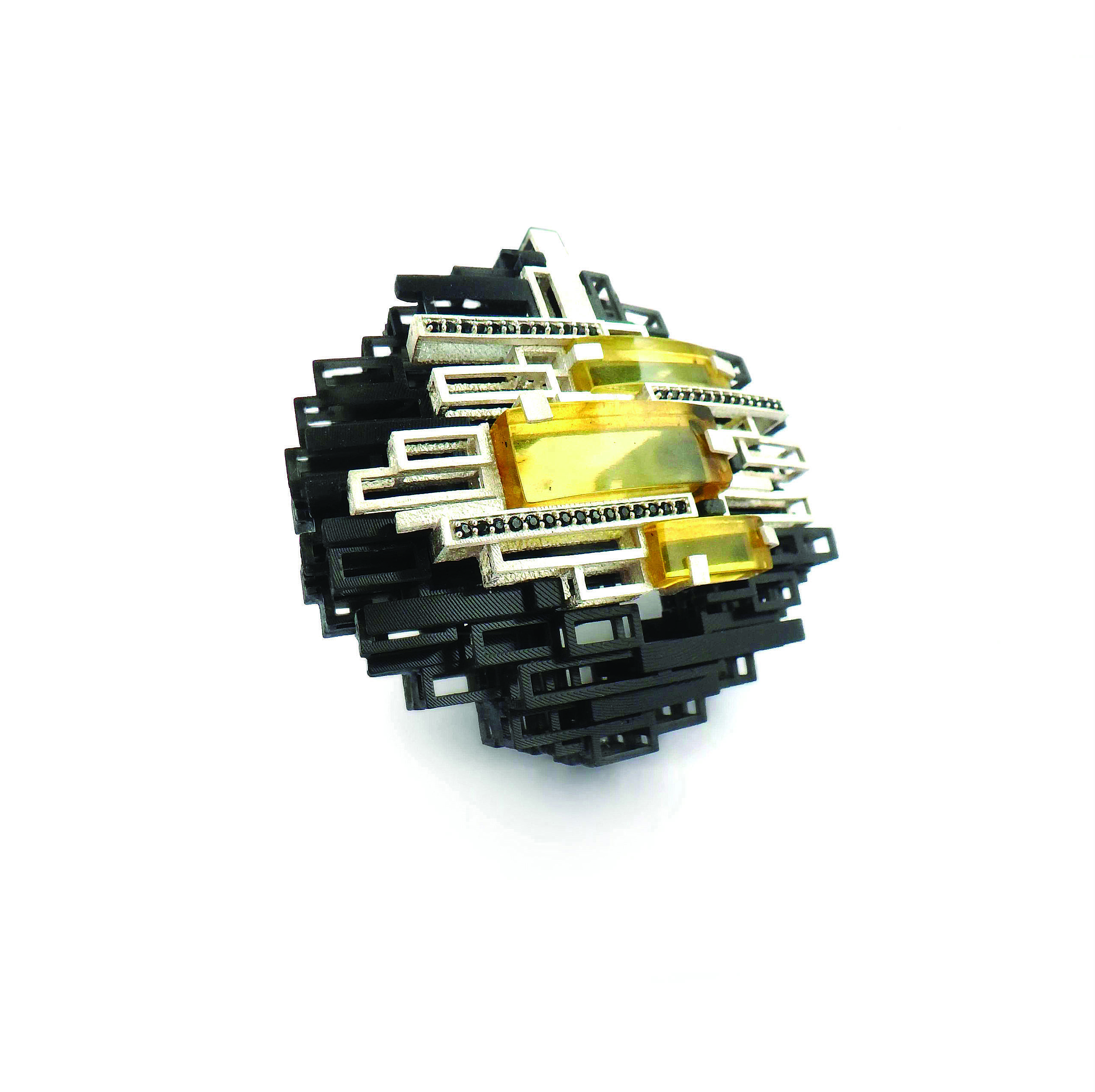 Pracownia Designu Eksperymentalnego, którą prowadzę w gdańskiej Akademii Sztuk Pięknych, nie jest klasyczną pracownią złotnictwa – zajmujemy się projektowaniem produktu, w tym także biżuterii. Studio ulokowane jest w strukturze wydziału wzornictwa przemysłowego, co powoduje, że nasi studenci są oswojeni z pracą przy komputerze, dobrze rozumieją wymogi inżynierii CAD / CAM, podstawowym narzędziem weryfikowania ich koncepcji jest druk 3D. Dzięki temu łatwiej jest nam przeskakiwać branżowe granice dyscyplin i pokonywać ograniczenia manualnego rzemiosła, testując również design parametryczny, generatywny, projektowanie w środowisku VR (virtual reality) i AR (augmented reality), czy też kreatywnie wykorzystywać algorytmy sztucznej inteligencji. Funkcjonujemy też w otoczeniu przemysłu – w aglomeracji Gdańska kilka tysięcy osób żyje z eksportu biżuterii z bursztynem – dlatego nasi absolwenci muszą rozumieć logikę współczesnej firmy produkcyjnej oraz sprawnie posługiwać się nie tylko młotkiem i palnikiem – czego oczywiście również nie unikamy – ale także świadomie wykorzystywać zalety technologii cyfrowych. Od dawna zresztą nie postrzegamy ich jako czegoś odrębnego, to po prostu jedna z wielu możliwości prototypowania lub wyrażania artystycznej ekspresji, czego warunkiem – podobnie jak w przypadku klasycznego rzemiosła – jest perfekcyjne opanowanie warsztatu, w tym przypadku cyfrowego, do którego niezbędna jest wieloletnia praktyka w ramach specjalistycznej edukacji.