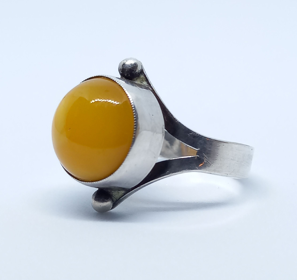 Pierścionek srebrny z bursztynem, Wytwórnia Wyrobów Bursztynowych, lata 70. XX wieku
