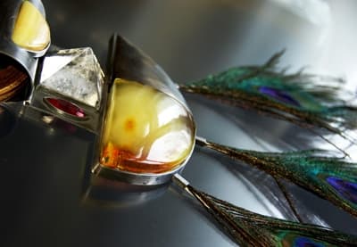 Dla projektantki, która z wykształcenia jest malarką, tworzenie biżuterii to przede wszystkim zabawa kolorem i formą. W swoich projektach balansuje na granicy kiczu, co czyni je jeszcze bardziej interesującymi. W najnowszej, bardzo kolorowej i pełnej zaskakujących zestawień kolekcji znajdziemy nie tylko bursztyn, srebro i kamienie kolorowe, ale także... pawie pióra.