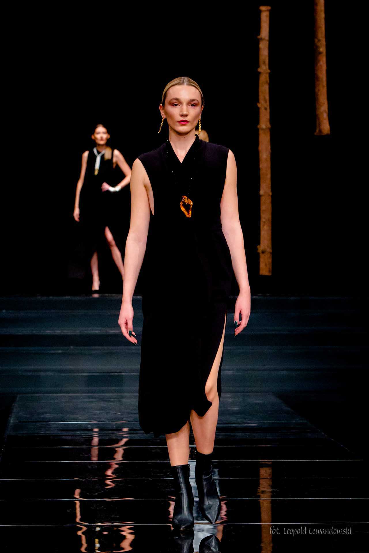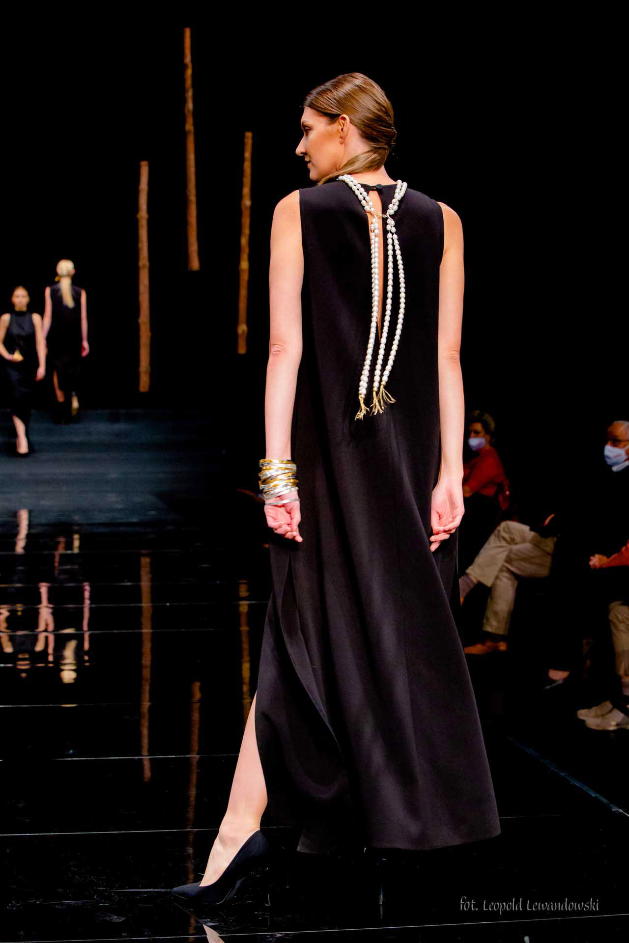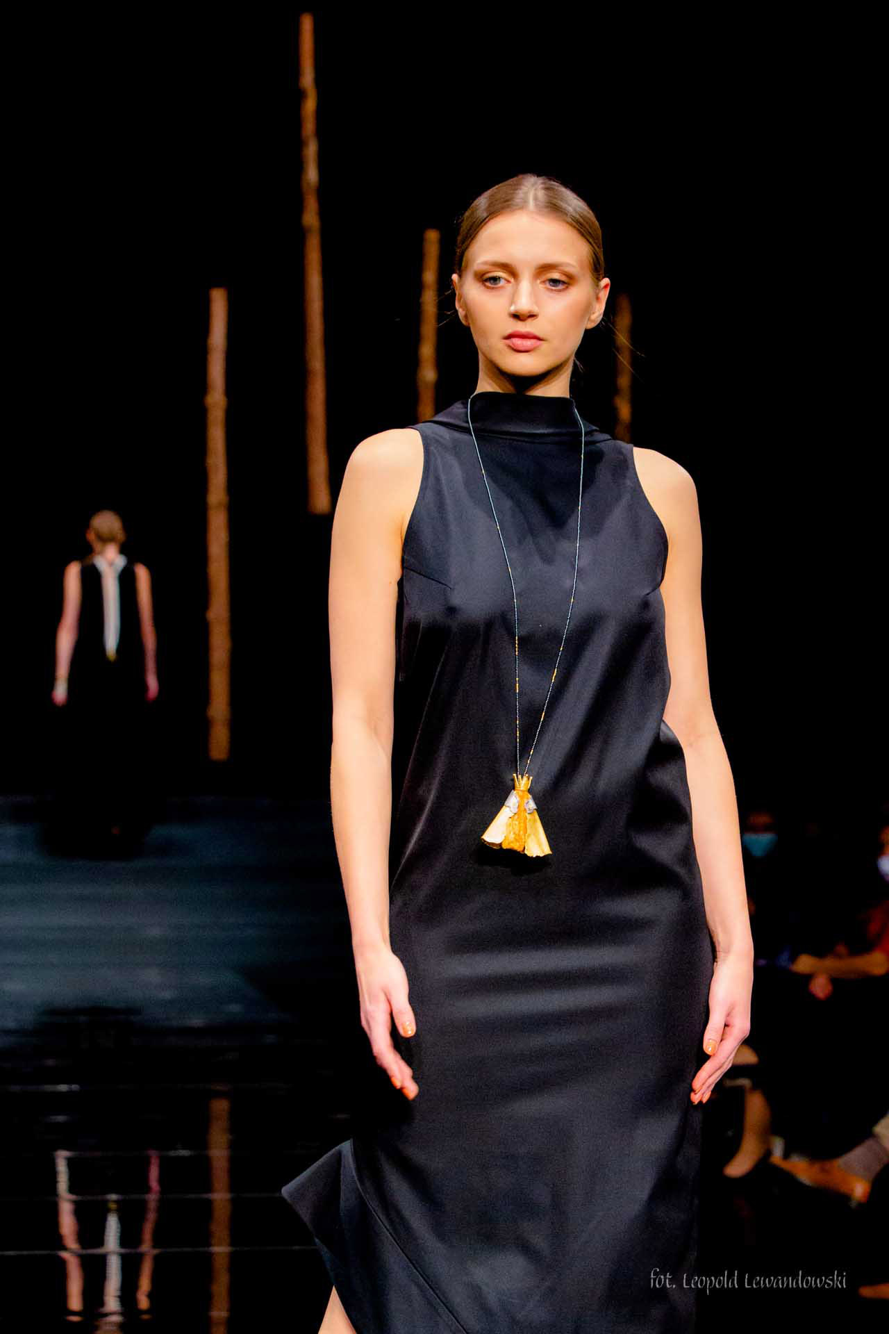 Biżuteria idealnie komponowała się z minimalistycznymi formami i stonowaną kolorystyką strojów Joanny Weyny PUDU – w charakterystycznym dla niej architektonicznym nurcie slow fashion, w którym projektuje funkcjonalne fasony ubrań, perfekcyjnie łączące modę codzienną ze stylem wieczorowym.