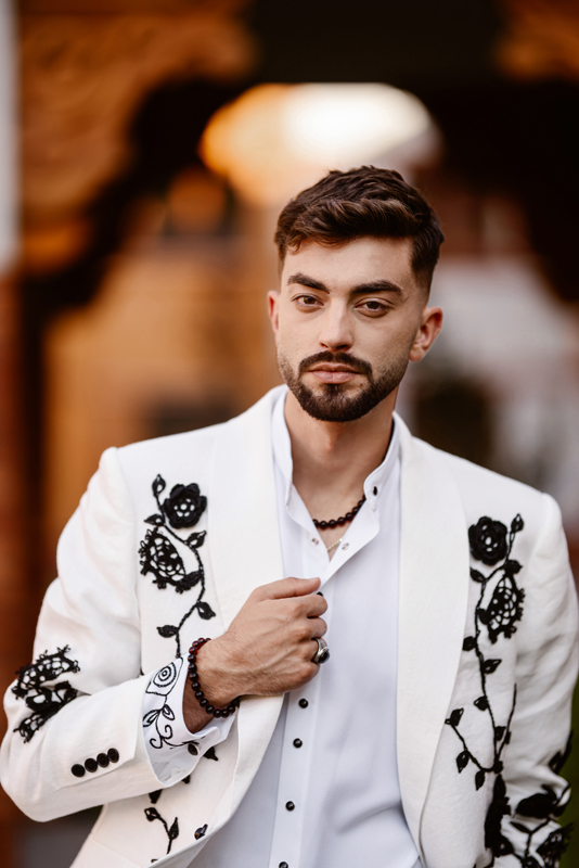 Kolekcja „Mazowsze Serce Polski” to opowieść o lokalnej tożsamości, którą Diana ubiera w formy współczesnej mody. Inspirację stanowi tu haft wilanowski – subtelny, wykonywany ściegiem łańcuszkowym, układający się w rytmiczne kwiatowe motywy. Na chustach czepcowych towarzyszy mu drzewko życia – symbol odradzania, cyklu i nieśmiertelności.