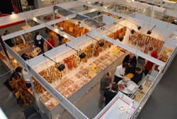 4. w niektórych stoiskach oferowano wyroby z prasowanego bursztynu nieoznaczone odpowiednimi etykietami. Po interwencji komisji brak ten uzupełniono. We wnioskach na przyszłość pod adresem Zarządu MTG SA znalazło się zalecenie wydrukowania jednolitych polsko-angielskich etykiet oznaczających bursztyn prasowany, które powinny być wystawcom tego rodzaju wyrobów wydawane przed urządzeniem stoisk.