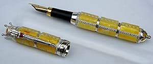 Pióro Amber Rex przekazane na rzecz Wielkiej Orkiestry Świątecznej Pomocy przez Państwa Wycichowskich posiada numer 016 – cała kolekcja jest limitowana do 999 sztuk. Pióro zostało wykonane ręcznie ze srebra i żółtej odmiany bursztynu, stalówka jest z 18-karatowego złota. Jest zdobione insygniami królewskimi – z jednej strony korona, z drugiej królewskie jabłko, a klips z wizerunkiem szczerbca. Choć nieco większe i cięższe od klasycznych piór, jest dobrze wywarzone i dobrze się nim pisze. Mogą o tym zaświadczyć jego dotychczasowi posiadacze, do których zalicza się prezydent Lech Wałęsa, noblista Günter Grass oraz Ambasador Bursztynu Lidia Popiel.Prace nad stworzeniem tego pióra trwały ponad 2 lata, a w niespełna rok zrobiło ono dość zawrotną karierę. Sukcesem okazała się już jego premiera – w czasie Międzynarodowych Targów Bursztynu, Biżuterii i Zegarków pióro otrzymało wyróżnienie w konkursie Mercurius Gedanensis w kategorii Mistrzostwo Jubilerskie za perfekcję wykonania oraz nawiązanie do historii Polski. Nagrodzony egzemplarz został przez autora przekazany do Muzeum Bursztynu w Gdańsku. Kolejne ważne wydarzenia to przekazanie pióra o numerze 007 prezydentowi Lechowi Wałęsie w czasie obchodów 1 rocznicy istnienia Muzeum Bursztynu w czerwcu ub.r., nobliście Günterowi Grassowi, który w październiku 2007 roku świętował w Gdańsku swoje 80. urodziny, oraz Lidii Popiel z okazji jej nominacji na Ambasadora Bursztynu w czasie Targów Biżuterii i Zegarków Złoto Srebro Czas 2007.