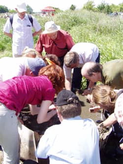Trzeciego dnia uczestnicy seminarium skoncentrowali się na zagadnieniach związanych z dokumentacją i ochroną złóż bursztynu. W części teoretycznej referaty wygłosili Regina Kramarska i Jacek R Kasiński z Państwowego Instytutu Geologicznego Warszawa – Gdańsk, którzy opowiedzieli o geologii i eksploatacji złóż bursztynu paleogeńskiego oraz perspektywach z tym związanych w Polsce i w krajach ościennych (referenci wykorzystali w swojej prezentacji wyniki prac Vadima Sivkova z Kaliningradu). We wnioskach autorzy stwierdzili, że w obliczu stale rosnących cen i zapotrzebowania na bursztyn warto ponownie rozważyć podjęcie wydobycia bursztynu w rejonie Chłapowa i na obszarze północnej Lubelsczyzny. W drugim referacie Leszek Jurys z Państwowego Instytutu Geologicznego, Oddział Geologii Morza w Gdańsku, wygłosił referat przygotowany wspólnie z Reginą Kramarską o metodyce dokumentowania i eksploatacji holoceńskich złóż bursztynu w Delcie Wisły. Autor wskazał m.in na bardzo luźny związek prac poszukiwawczych, rozpoznawczych i eksploatacji bursztynu w Delcie Wisły prowadzonych na lądzie od początku lat 70. ubiegłego wieku, z prawem geologicznym, częściowo z winy samego prawa nie przystającego do stosowanej metodyki prac. Leszek Jurys postulował zmianę sytuacji w tym zakresie, która ułatwi edwidencjonowanie obszarów poszukiwań oraz pozyskiwanie informacji o geologicznych warunkach występowania bursztynu, pod warunkiem jednak, że granic złóż nie będzie się wyznaczać, a tylko empirycznie stwierdzać, wydobyty bursztyn będzie się ważyć a nie obliczać jego zasoby, oraz określać jakość kopaliny na podstawie ceny surowca. Na zakończenie części teoretycznej Robert Pytlos, pełnomocnik Prezydenta Gdańska ds. bursztynu omówił pozytywne efekty realizacji zarządzenia Prezydenta Gdańska Pawła Adamowicza, regulującego zasady rozpoznania, poszukiwania i wydobycia złóż bursztynu na terenach gminnych. Podsumowując seminarium prof. Marek Nieć z Instytutu Gospodarki Suowcami Mineralnymi i Energią Polskiej Akademii Nauk w Krakowie, podkreślił konieczność zmian przepisów w prawie geologicznym i górniczym oraz ochrony środowiska, które ułatwią dokumentację i ochronę złóż kopalin i ograniczą nielegalne ich wydobycie. Na koniec prowadzący seminarium pochwalił działania władz Gdańska w tym zakresie i potrzebę ich wsparcia ze strony administracji rządowej poprzez nowelizację przepisów ułatwiającą wydobycie bursztynu oraz zaprosił uczestników na prezentację w terenie legalnego rozpoznania złóż bursztynu na gdańskich Stogach.Organizatorzy dziękują prezydentowi Pawłowi Adamowiczowi za wszechstronną pomoc i zaangażowanie przy organizacji seminarium. Szczególne podziękowania składają na ręce Krzysztofa Lalika, współwłaściciela firmy Golden Amber z Hrubieszowa, który zorganizował dla uczestników prezentację eskploatacji bursztynu na terenach dzierżawionych od gminy Gdańsk.