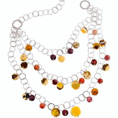 Jest to wstęp do opisu kolekcji „Stone”, która zaistniała już mocniej nie tylko w świadomości Polek: jeden z naszyjników otrzymała Sharon Stone w czasie wizyty w Polsce (pisaliśmy o tym: Bursztynowa kolia dla Sharon Stone) . Wkrótce potem do wybranych salonów trafiło 20 takich naszyjników (kolekcja limitowana). Teraz powstała pełna kolekcja „Stone” zaprojektowana przez Annę Orską i inspirowana tym prezentem: 20 kompletów biżuterii, na które składają się kolie, bransolety i kolczyki wykonane z bursztynu. Od pierwowzoru różnią się one jednak wzornictwem, kształtem, połączeniem bursztynu z antycznymi agatami, długością i masą.