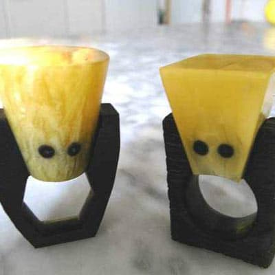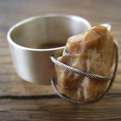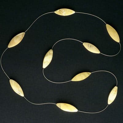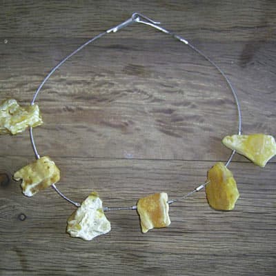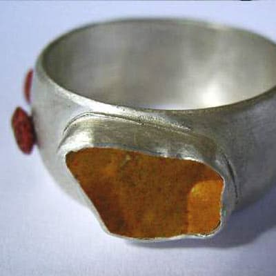 Praca w bursztynie rozbudziła chęć użycia także innych organicznych materiałów: masy perłowej, drewna i czarnych korali. Tak powstały: „Królowa ryb“ – brosza z masy perłowej i złota, kolia z drewna zamkniętego w srebrnych ramkach oraz dwa pierścionki z drewna zdobionego bursztynem.